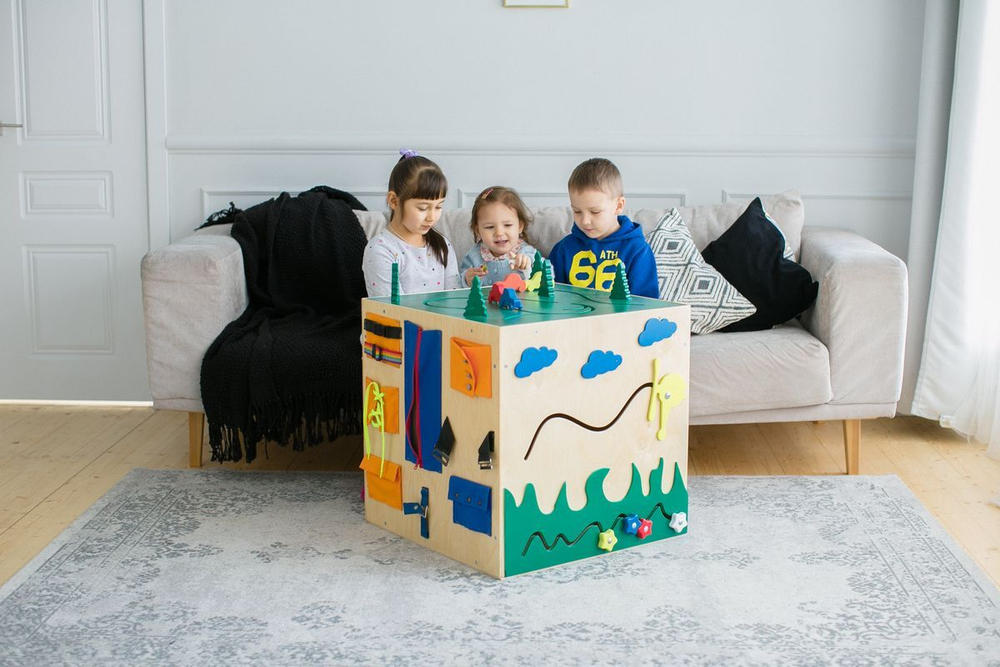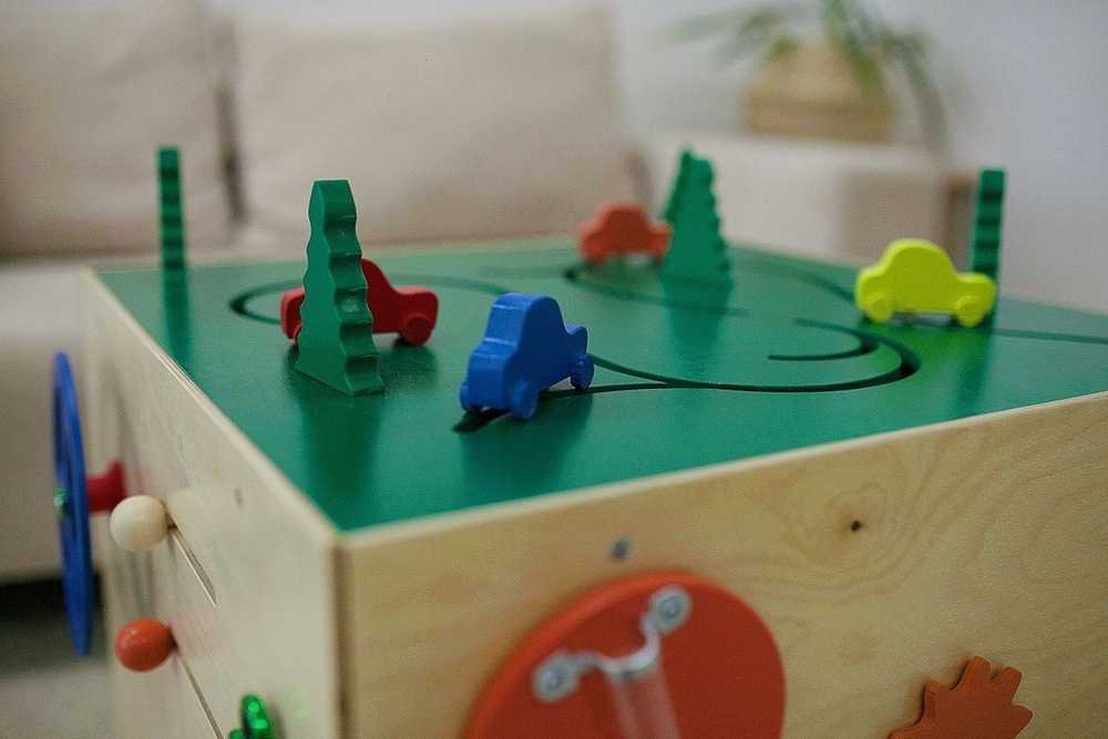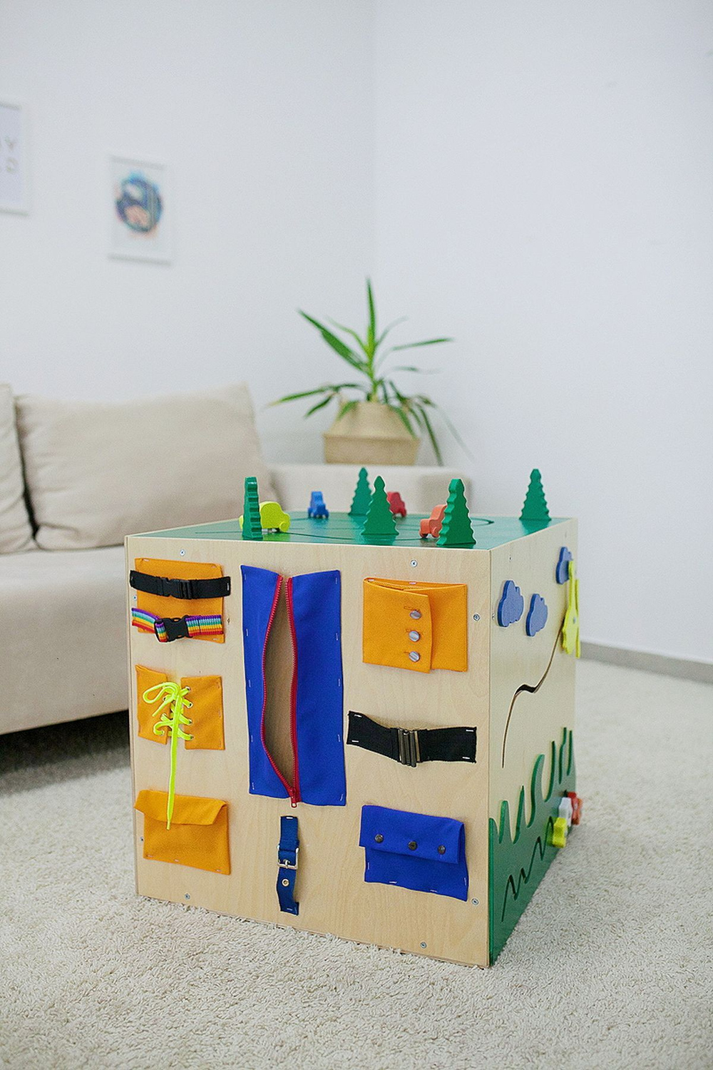 Бизикуб состоит из нескольких панелей и является полноценным развивающим комплексом. На каждой панели размещены специальные элементы, способствующие всестороннему развитию детей. Каждый элемент детально продуман и имеет уникальные функции. Дети не только физически и умственно развиваются, но и учатся самостоятельности в домашних делах. Главный плюс – эффективное развитие и безопасное удовлетворение детского любопытства. Бизикуб предназначен для проведения развивающих игр в дошкольных образовательных учреждениях, коррекционных центрах и т.д.