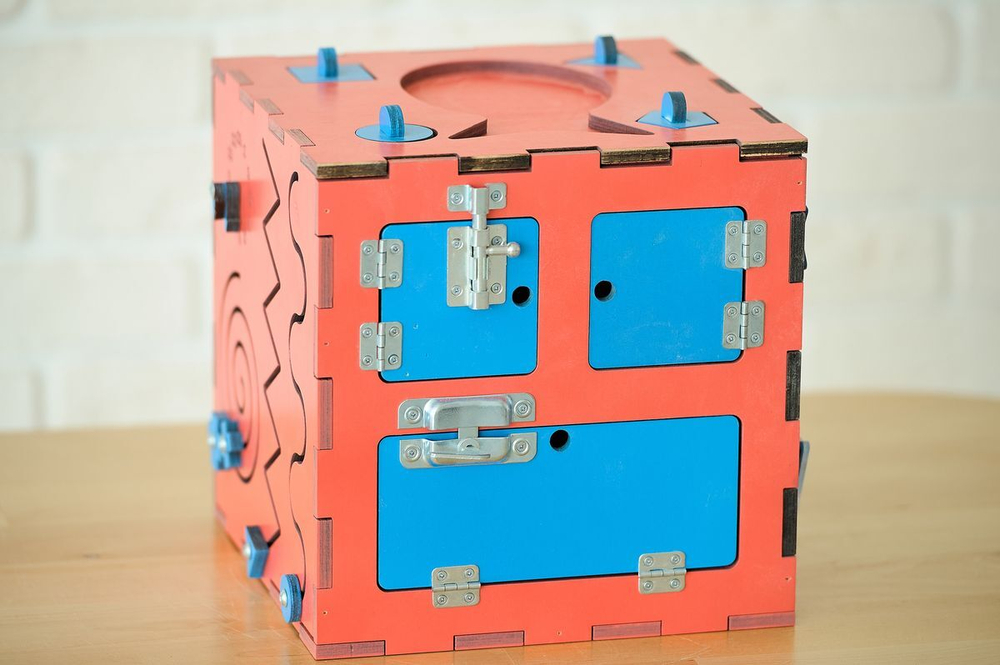 Бизикуб представляет собой уникальный развивающий комплекс, со всех сторон состоящий из разнообразных элементов. Детям стоит внимательнее рассмотреть каждую деталь панелей. Что интересного ждет малышей во время игры? Ребята смогут отправиться в путешествие по лабиринтам, научатся решать сложные головоломки, а также сыграют во множество увлекательных игр.