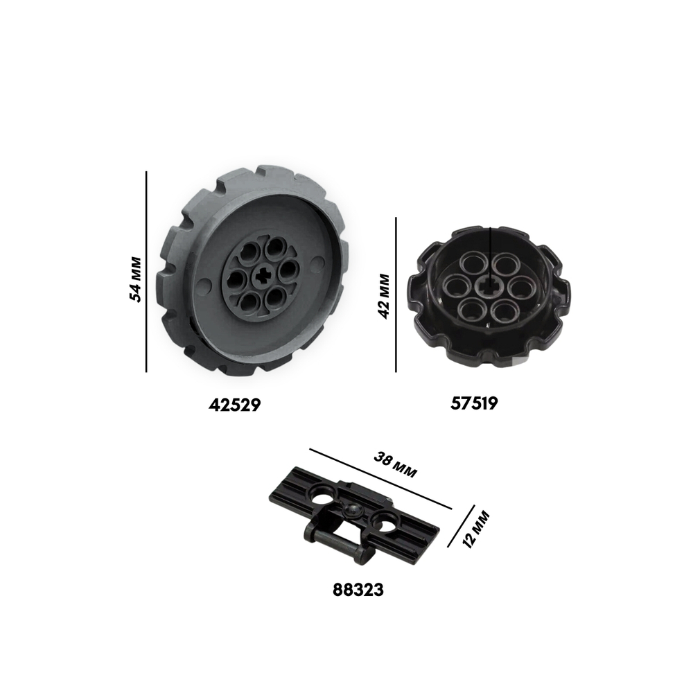 Большие гусеничные катки - незаменимый элемент для сборных моделей. Эти детали позволяют сконструировать реалистичные вездеходы и роботы. Подходят для различных проектов, связанных с гусеницами для техники.