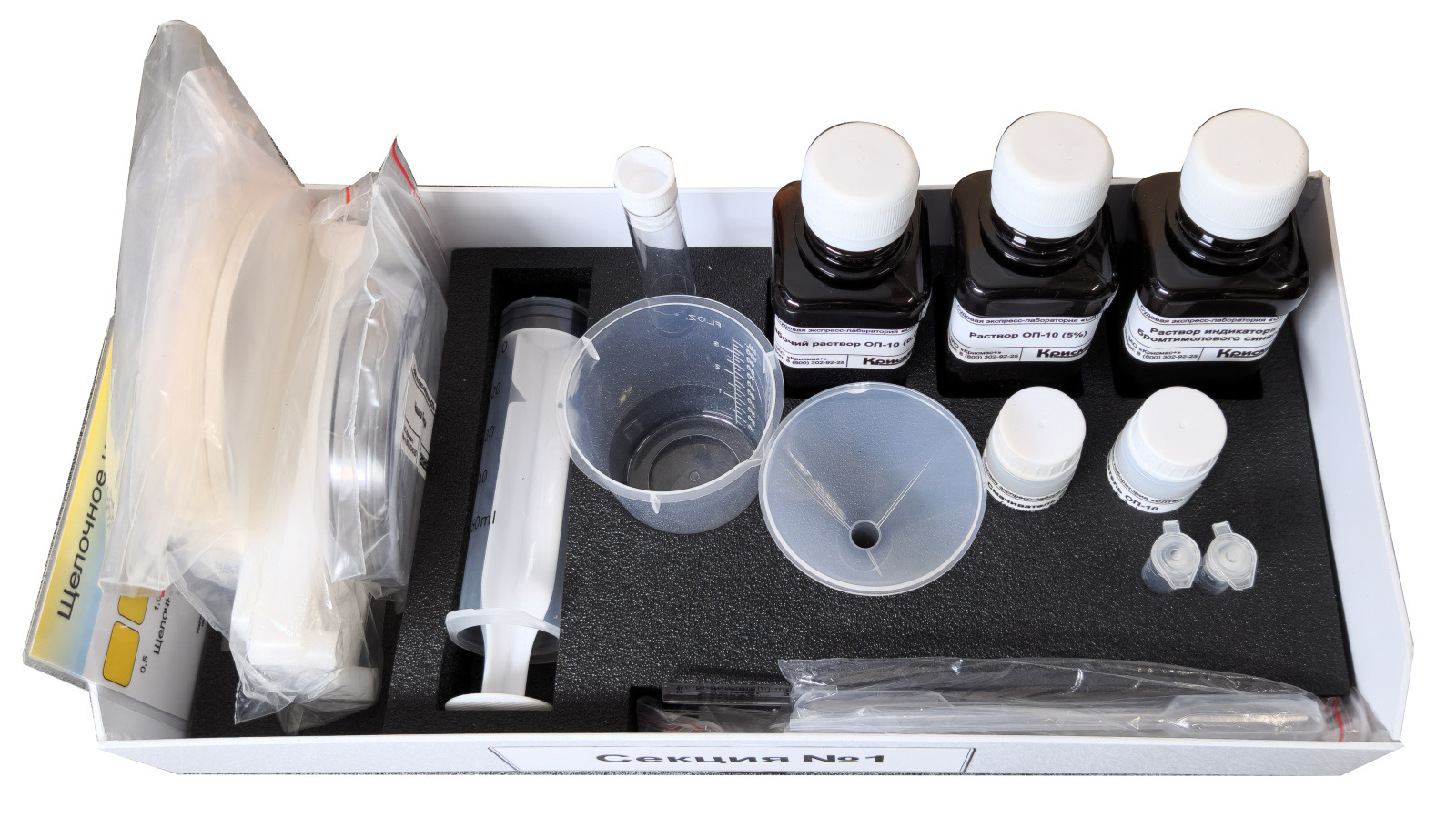 Главный модуль представляет собой раскрывающийся ящик-укладку из ламинированной фанеры достаточной прочности, снабженный замком и ручками для переноски, а также комплектом крепежа для закрепления изделия на стенке или судовой переборке (при необходимости). Внутри укладки размещены флаконы с расходуемыми химическими реагентами и растворами, средства измерений, стеклянная посуда и принадлежности для контроля, средства защиты и документация. Ящик имеет откидную полку-столик для размещения реагентов и принадлежностей при проведении определений.