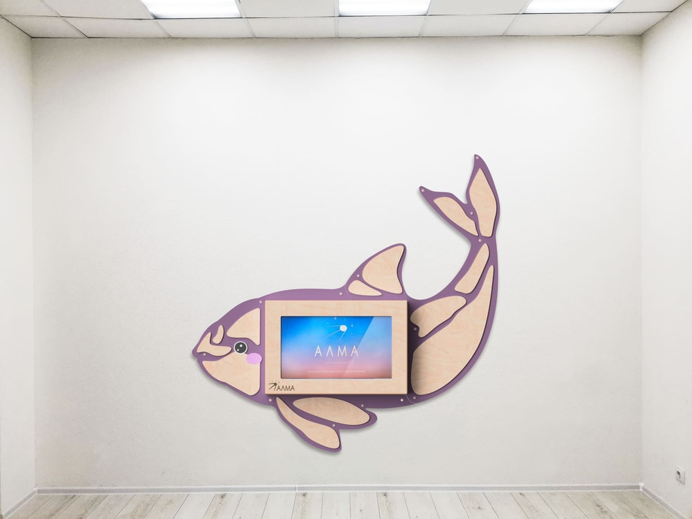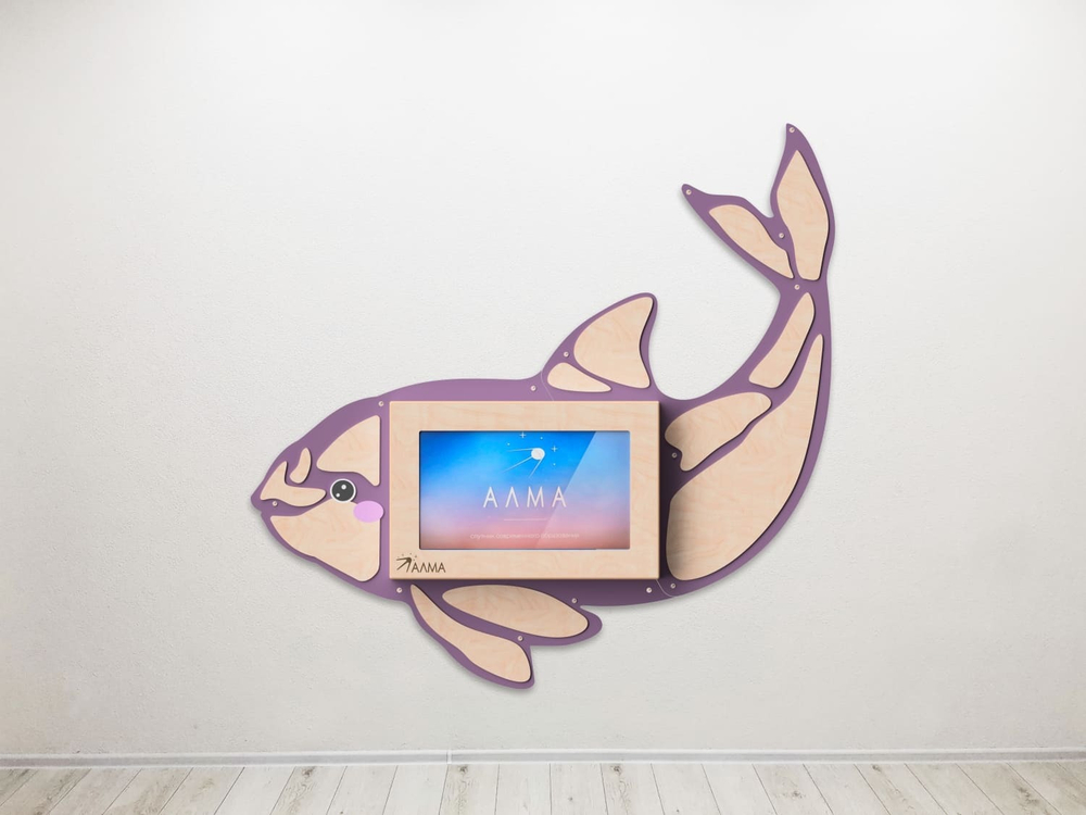Настенная панель «Жираф» со встроенной интерактивной сенсорной панелью 32 дюйма. Это одновременно декоративное оформление стен и развивающая игрушка, ведь на панели установлен пакет игрового и обучающего ПО от АЛМА.