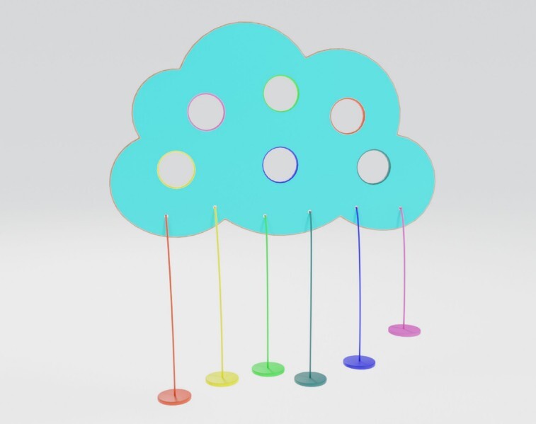 Декоративно-развивающая панель «Цветные пары» используется для изучения форм и цветов маленьким детьми. Панель выполнена в виде облачка с вырезанными в нем кружочками одного диаметра, внутренний контур которых крашен в один из цветов: красный, желтый, зеленый, синий, фиолетовый и голубой. Внизу облачка подвешены кружочки, подходящие по диаметру и цветам к отверстиям.