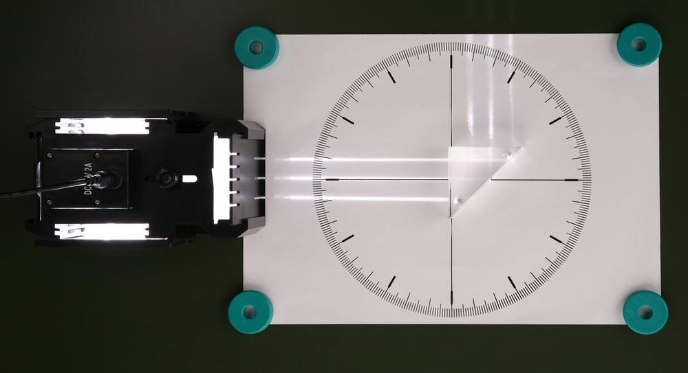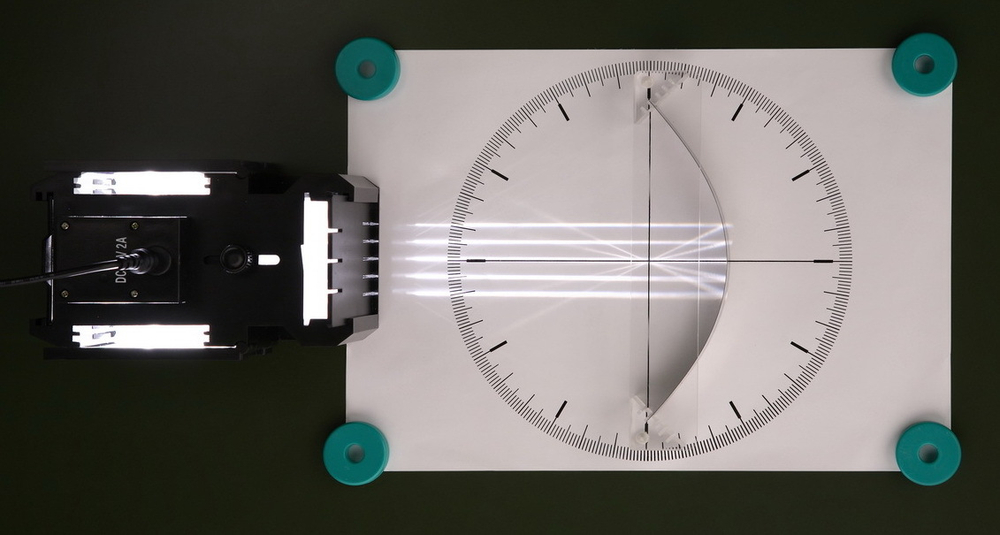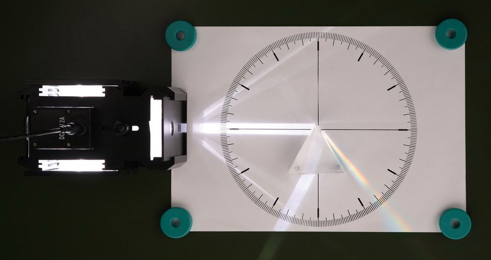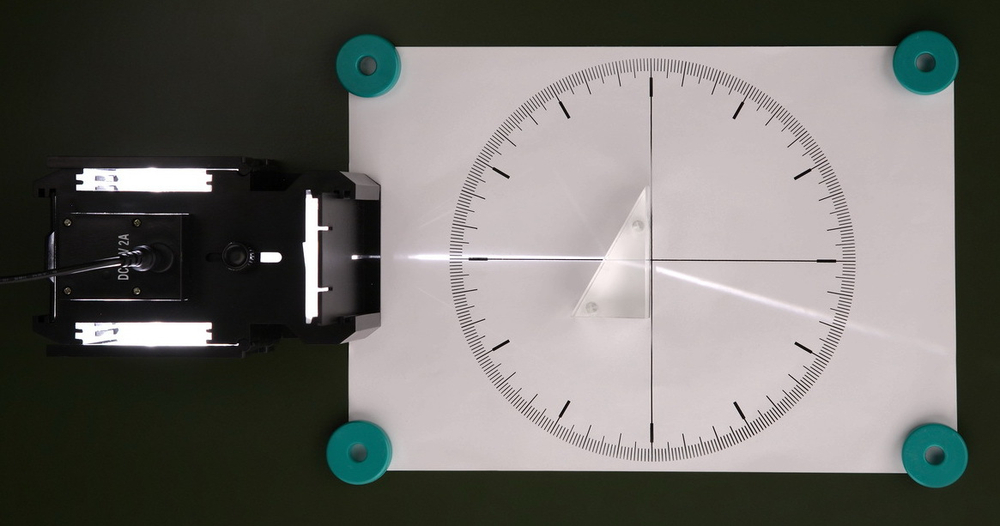 Для наблюдения хода лучей в оптических системах в набор входит экран белого цвета, на который помощью магнитных креплений устанавливаются цилиндрические линзы и призмы. Опыты также могут проводиться с использованием металлической классной доски.
