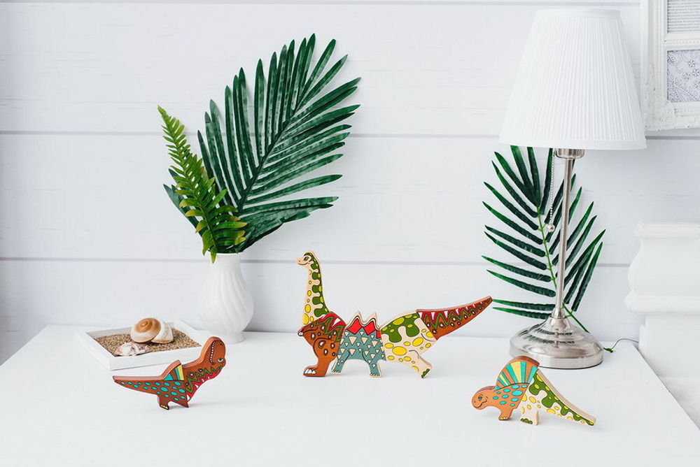 5. Постройте пирамиду, поставив динозавров одного на другого, находя равновесие.