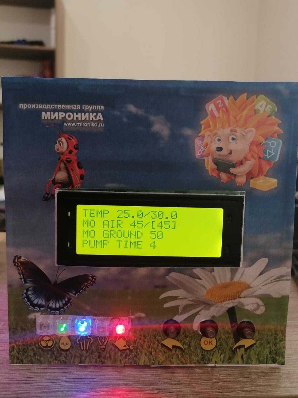 • Четырехстрочный LSD экран для вывода информации о текущем состоянии Умной грядки и основных данных с датчиков.