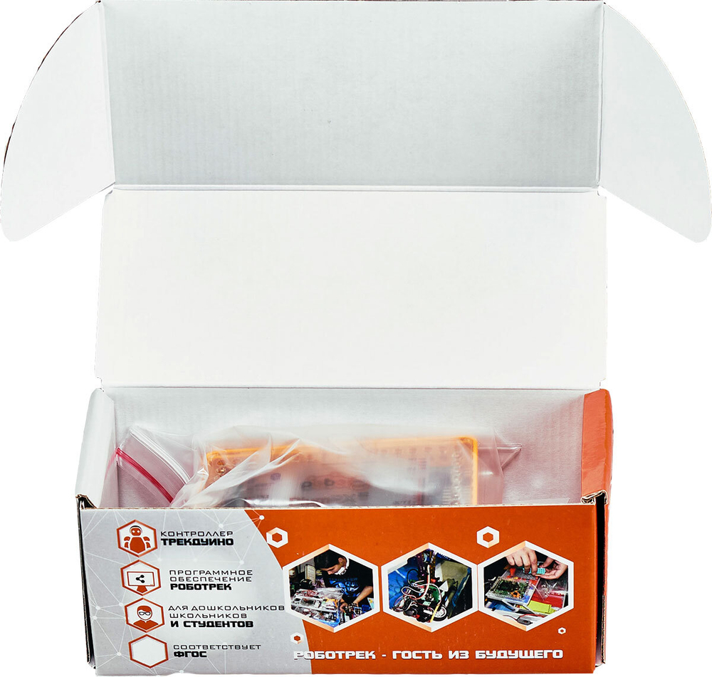 В контроллере есть все необходимое для реализации различных робототехнических проектов: Универсальный робототехнический многофункциональный контроллер «Трекдуино ПРО» представляет собой электронное устройство с возможностью многократного перепрограммирования в двух программных средах (MicroPython и Arduino С). Контроллер является сердцем и мозгом робототехнического конструктора.