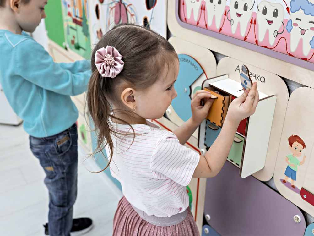 Прочно закрепляются на стенах и не свалятся на детей, даже если они будут тянуть. Все материалы панелей безопасны для детей и сертифицированы. Малыши могут трогать, облизывать и грызть деревянные детали – их здоровью ничего не угрожает.