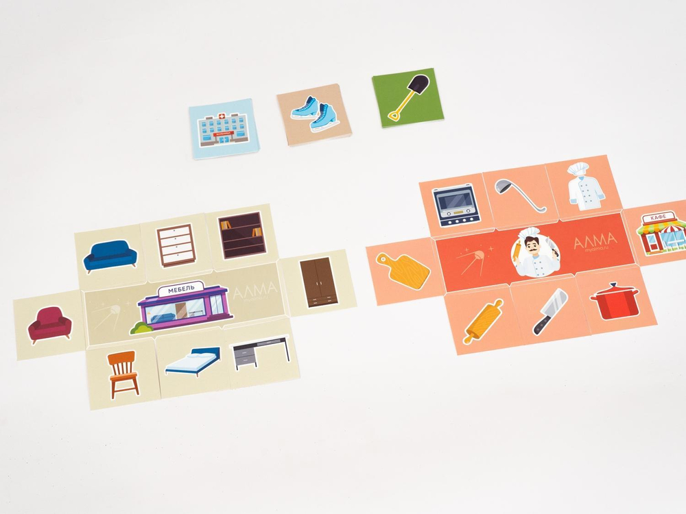 Тематические карточки для игры «Лото»: магазины и товары, профессии и инструментарий