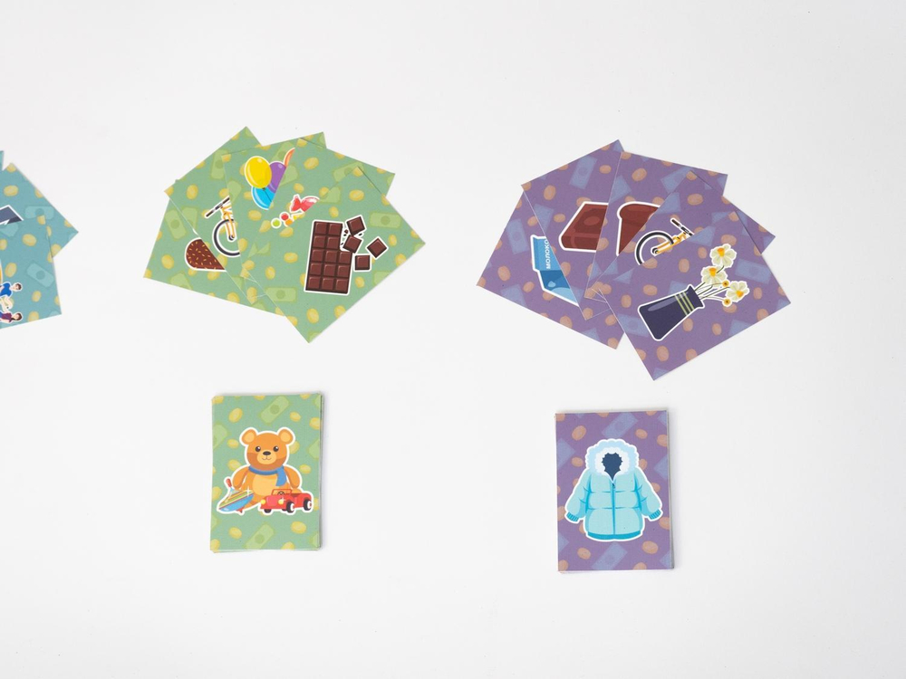 Рациональный выбор и анализ трат. С тематическими карточками малыши научатся ориентироваться в понятиях «хочу/надо», «дорого/дёшево», «можно купить/нельзя». А также научатся анализировать, что такое доходы и расходы семьи, и какие они могут быть.