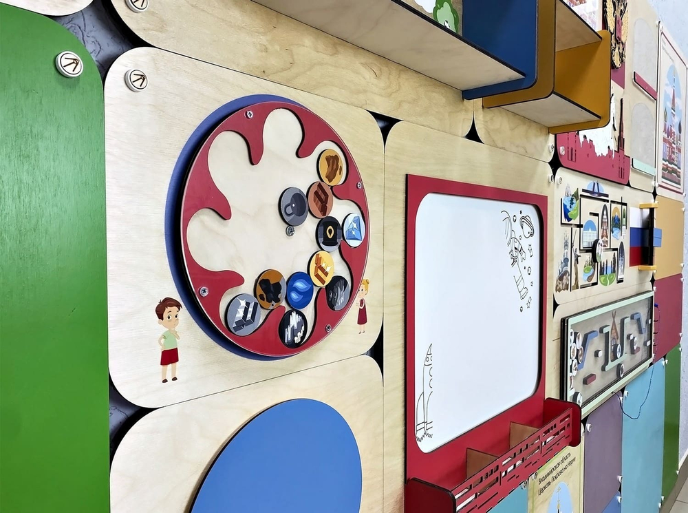 Это образовательная панель для оформления пространства детских учреждений. Состоит из четырёх модулей, которые можно комбинировать по своему усмотрению.