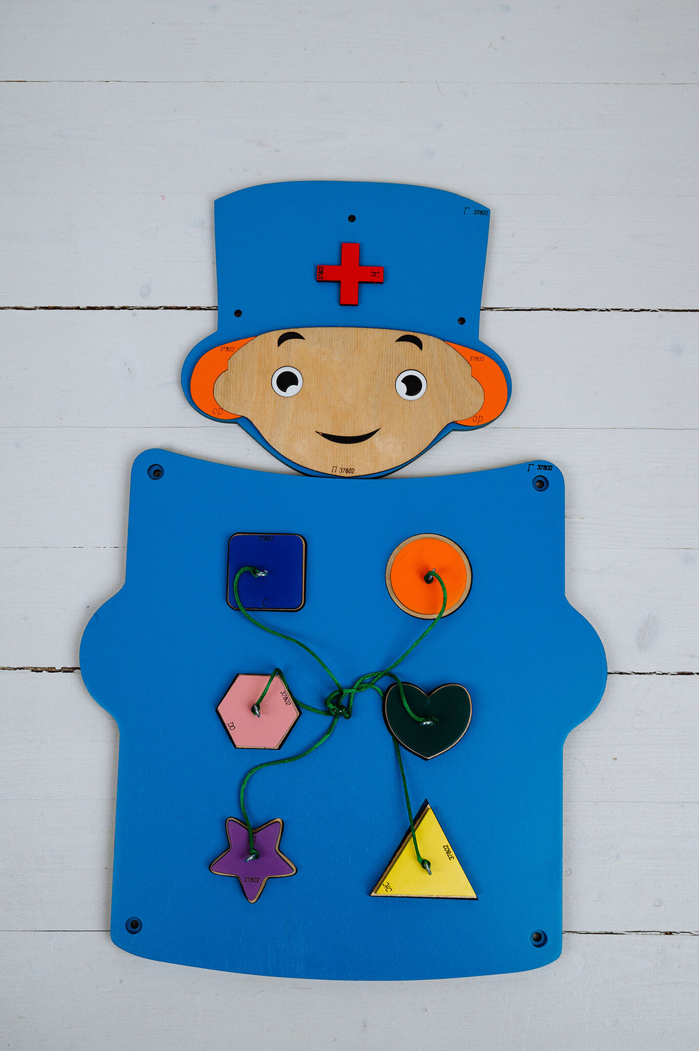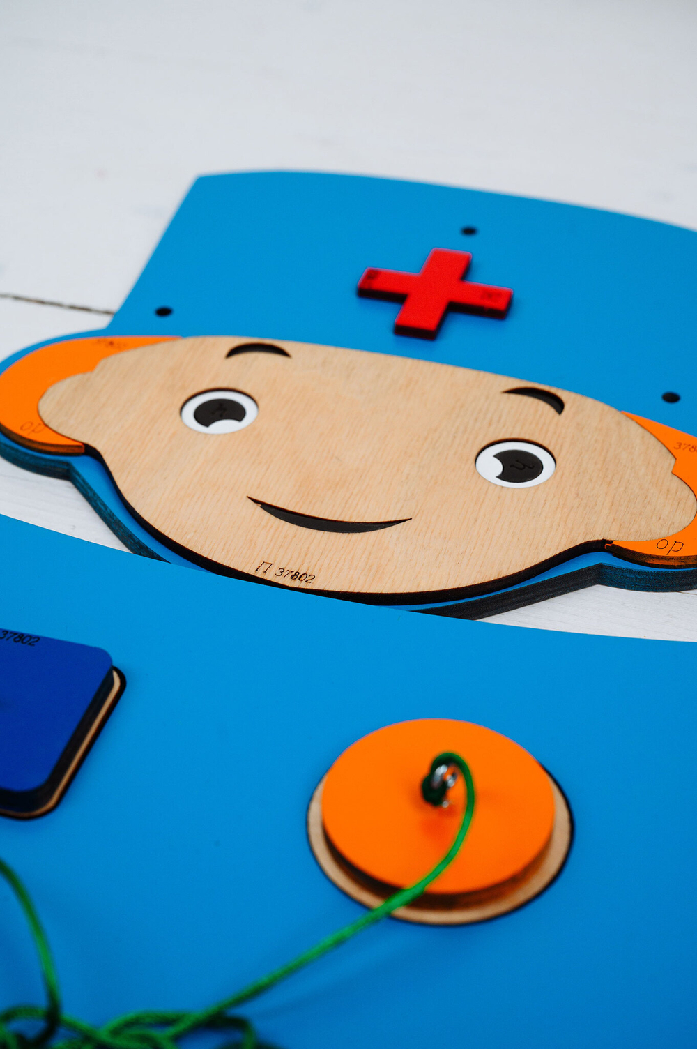 Зеленые держатели, имитирующие лейкопластырь, помогают малышам почувствовать себя настоящими докторами и помочь пациенту. Дети осваивают базовые навыки профессии и с удовольствием выполняют несложные задачи;