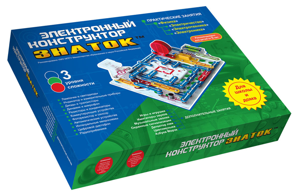 Электронный конструктор среднего уровня, позволяющий ребёнку начать интенсивное обучение электронике. Основная задача конструкторов Знаток: показать связь между школьной программой и реальной жизнью. Знаток – умным детям и умным родителям!