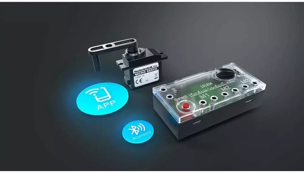 Старые громоздкие пульты управления уходят в прошлое! Сейчас достаточно смартфона или планшета для дистанционного управления моделями fischertechnik. Технология Bluetooth позволяет управлять моделями на расстоянии до 10 метров, а также использовать несколько наборов в одной комнате, не мешая друг другу. С помощью пропорционального управления можно контролировать три двигателя и одну рулевую машинку. В комплект входит приёмник и RC-сервомашинка.