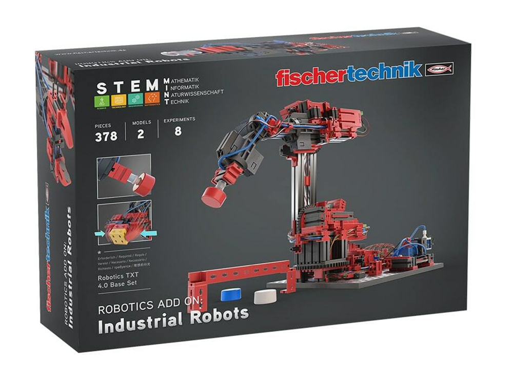 Комбинация дополнительного набора "Плюс: Промышленные роботы" с Базовым набором TXT 4.0 позволяет учащимся самостоятельно собрать и запрограммировать две реалистичные модели шестиосных роботов-манипуляторов.