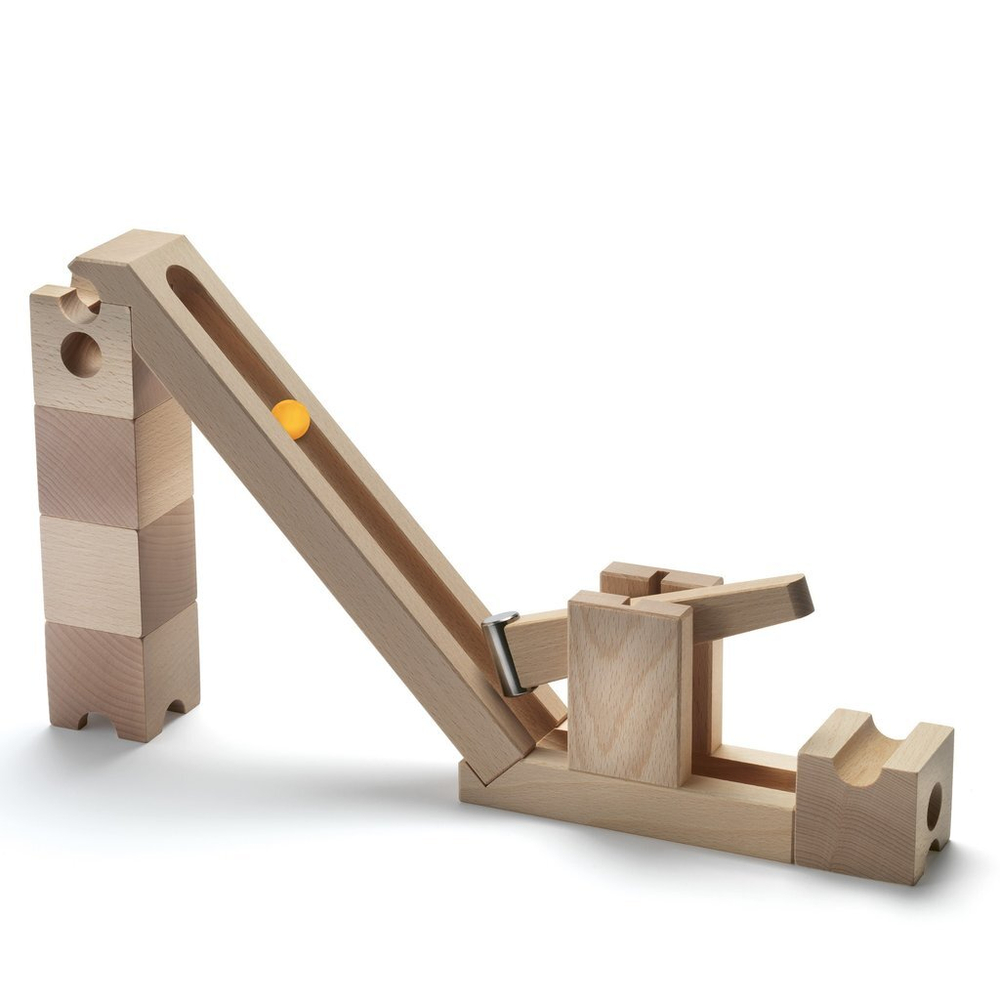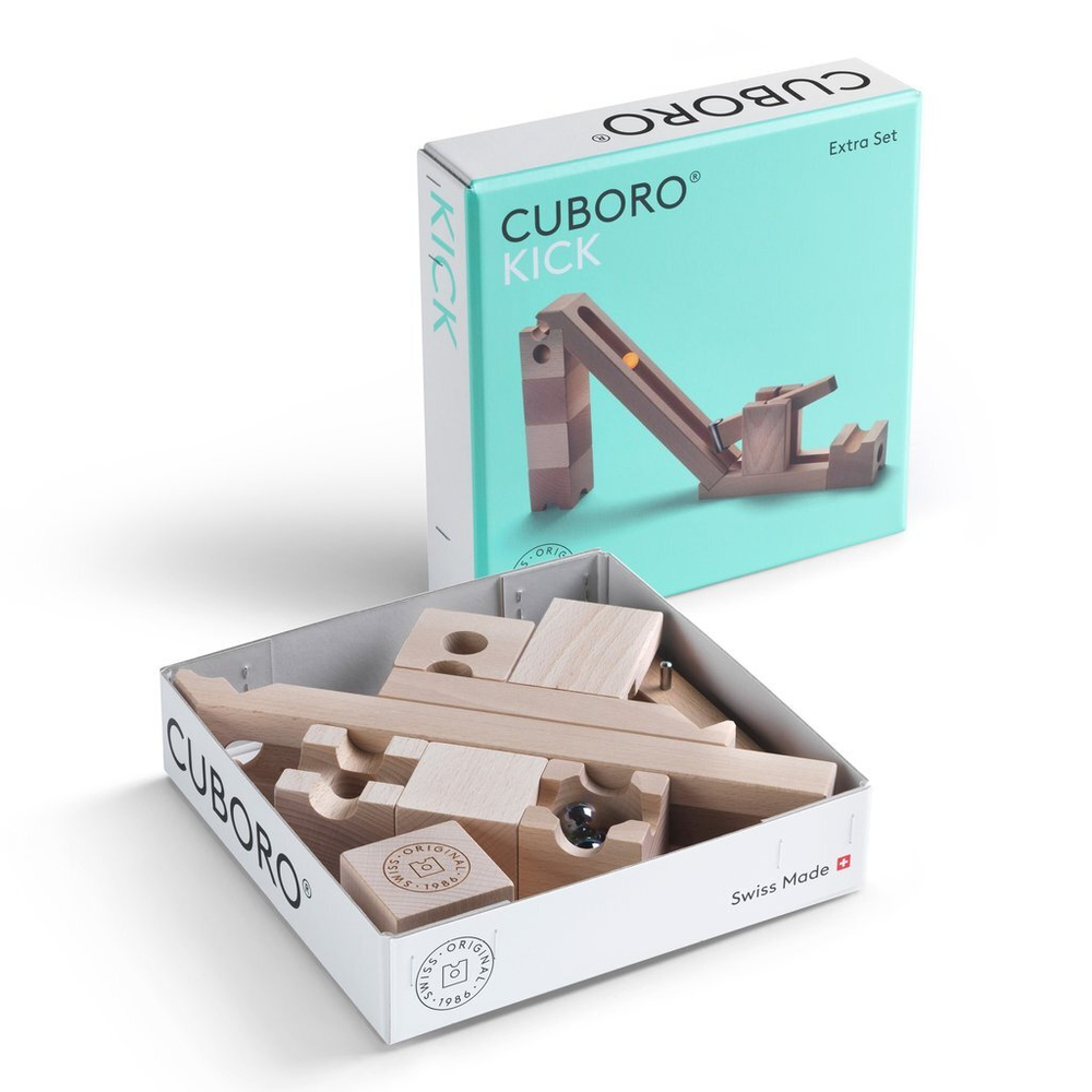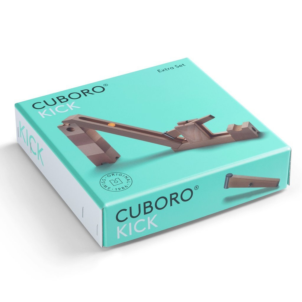 Деревянный конструктор CUBORO KICK своим названием говорит сам за себя. KICK переводится как УДАР. НаборCUBORO KICK состоит из 8 элементов, благодаря которым можно соорудить катапульту. Катапульта набора CUBORO KICK поднимает шарики на 4 уровня (кубика) вверх. Если в вашу конструкцию дороги интегрирован набор CUBORO KICK, то про него будут говорить «вечный двигатель».