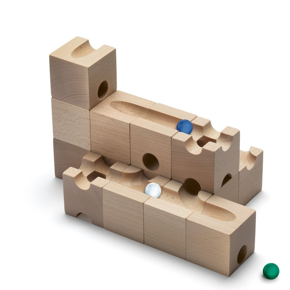 Деревянный конструктор Cuboro TRICK является дополнительным к основным конструкторам Standard. Благодаря кубикам TRICK можно сделать конструкцию с двумя дорожками, потому что в наборе TRICK присутствую кубики с делением одной дорожки на две. Куда покатится шарик это загадка. Таким образом получаются из набора TRICK можно создать конструкции лотереи.