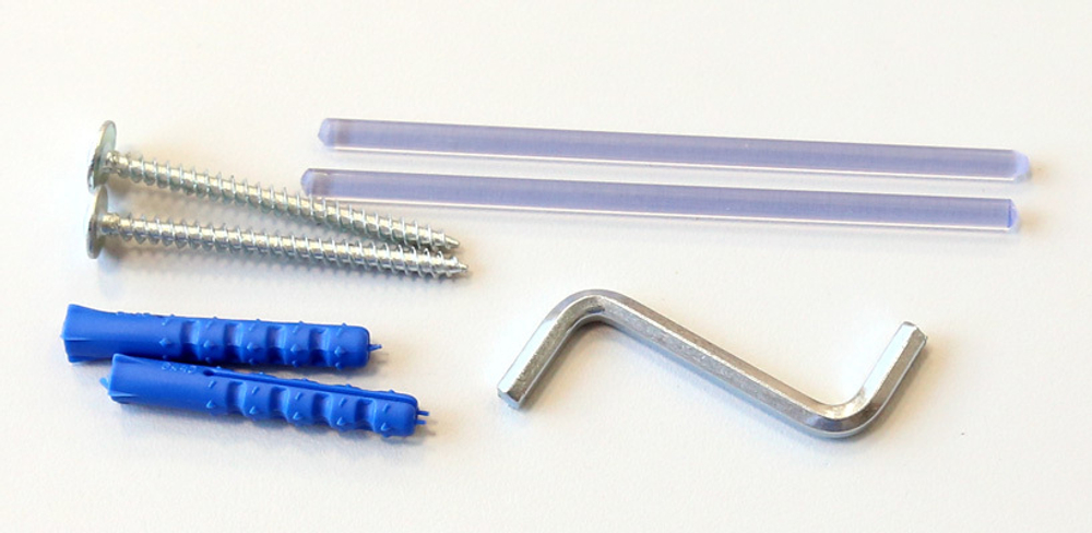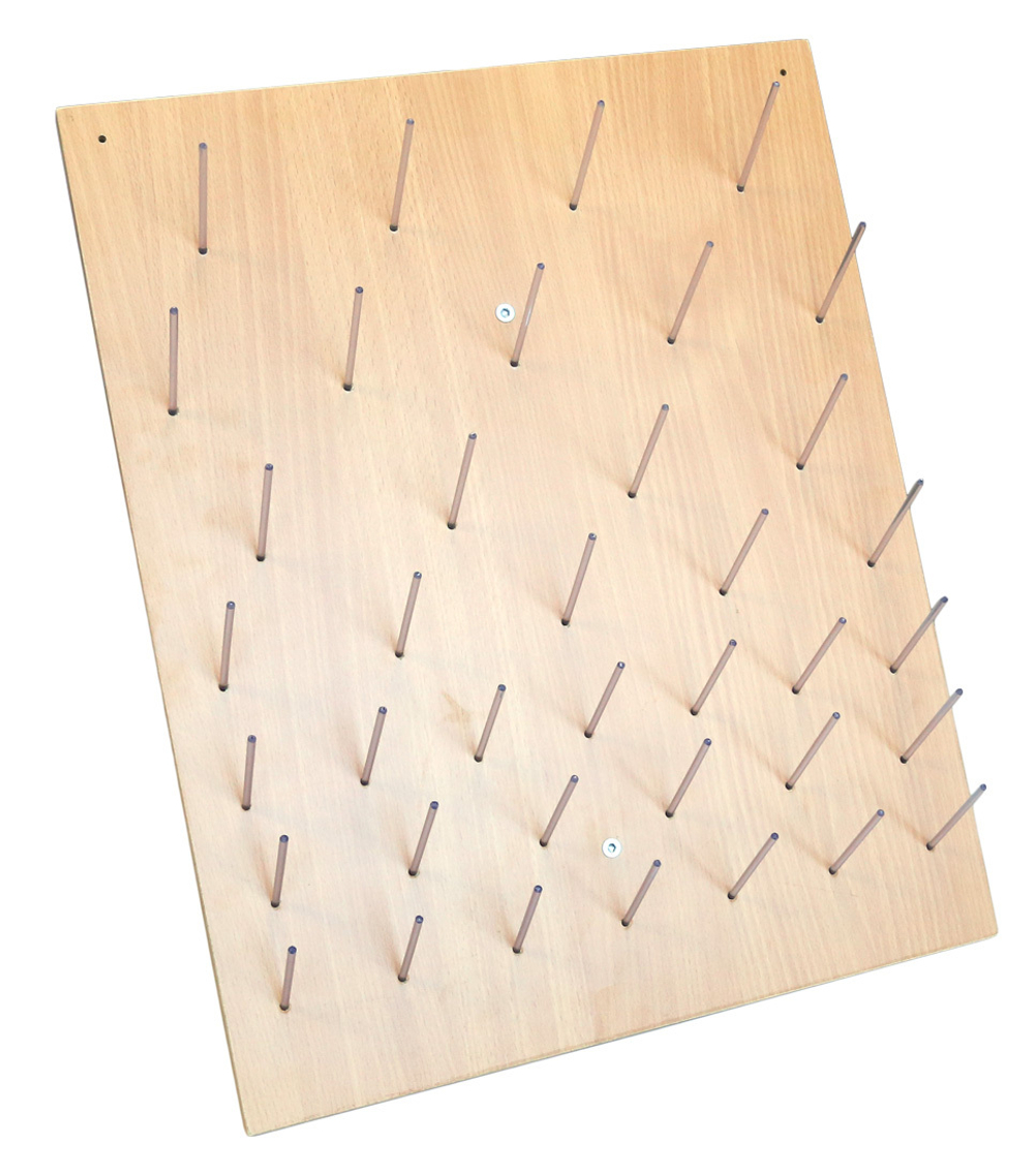 Доска представляет собой деревянную панель с 38 держателями для посуды. Доска имеет 2 отверстия для крепления к стене на шурупы (которые входят в комплект поставки). Также доска имеет подставку для автономного размещения на столе.