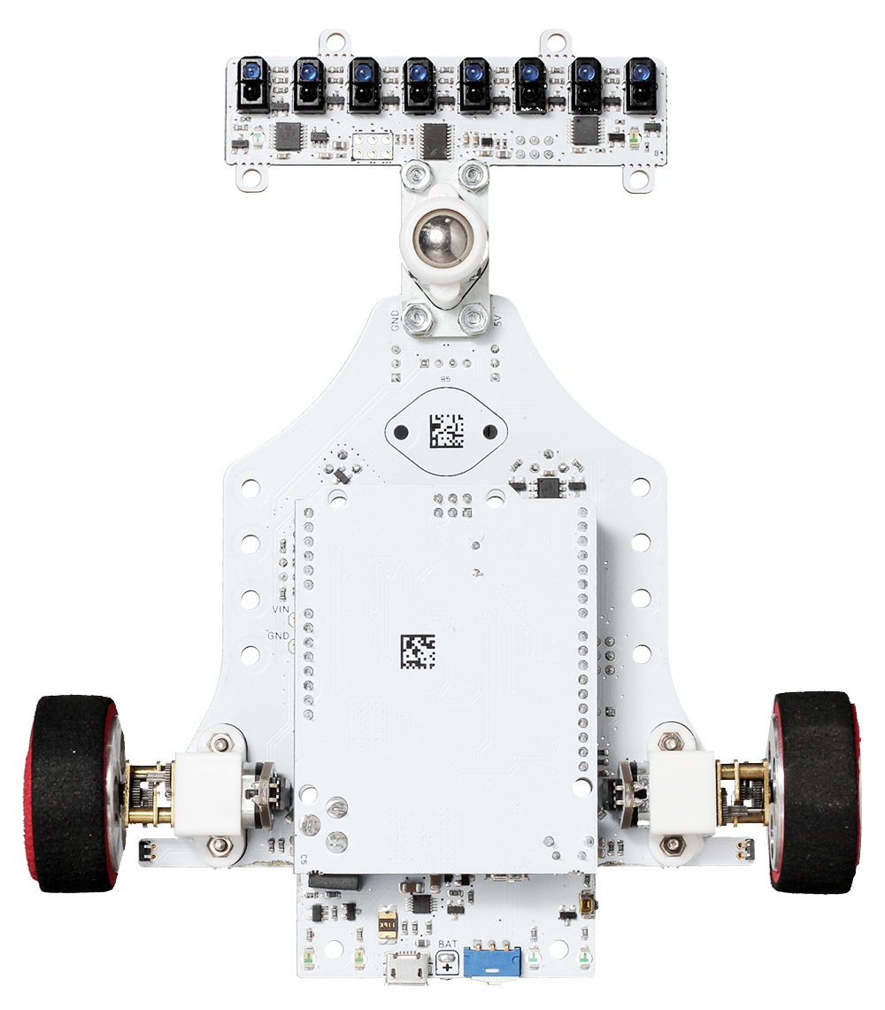 К передней части платы прикреплены шаровая опора и восьмиканальный датчик линии.