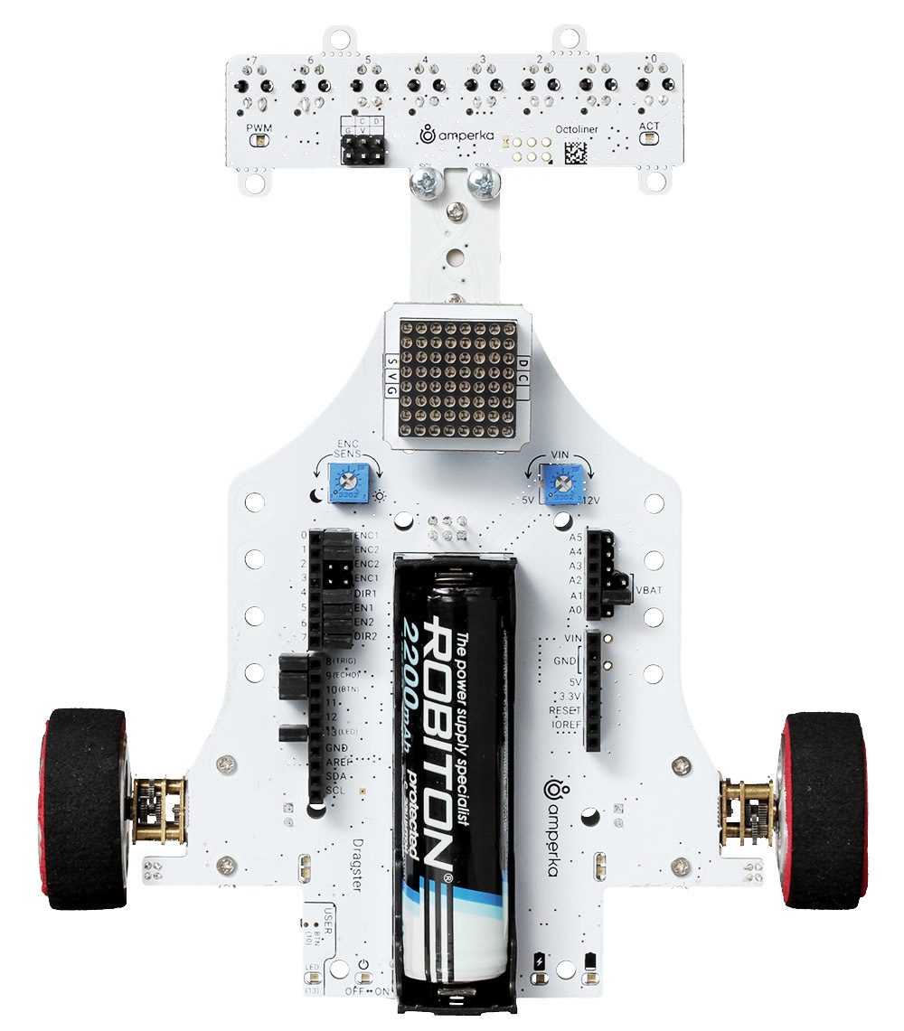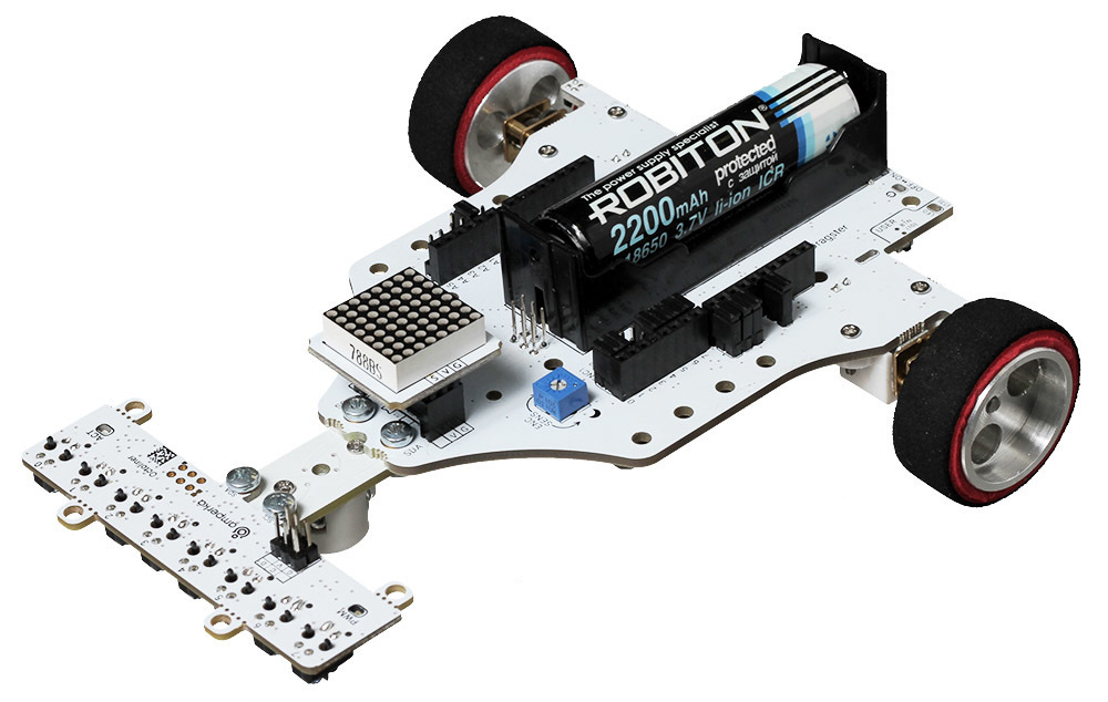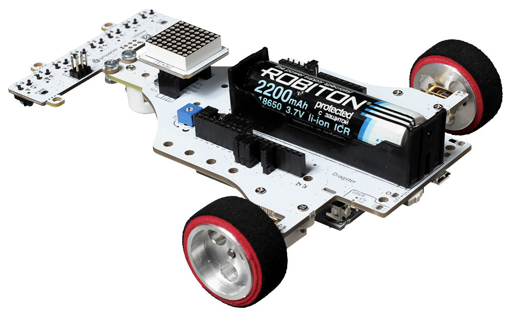 Платформа и контроллер питаются от общего аккумулятора форм-фактора 18650 – вам не придётся постоянно искать новые батарейки, емкости аккумулятора хватит на весь гоночный день.