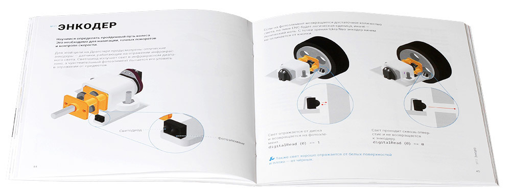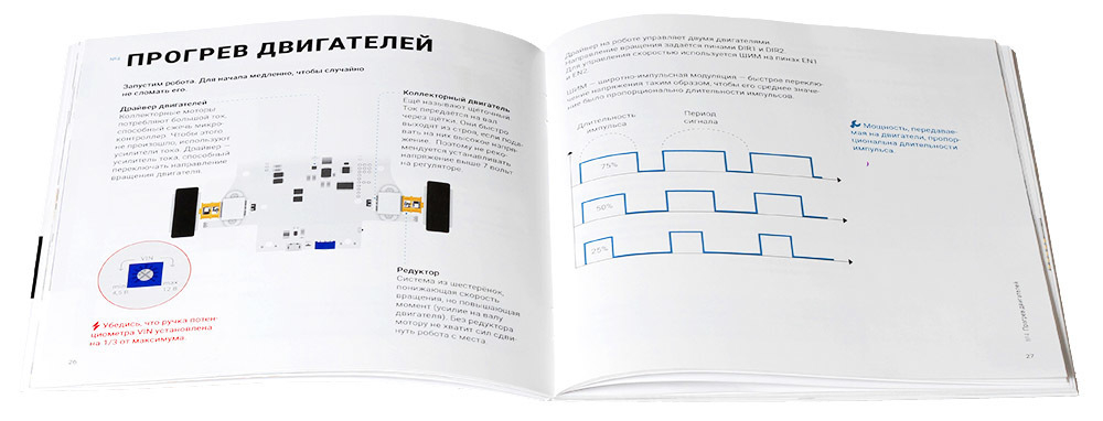 Начать знакомство с миром программирования гоночных роботов поможет красочный буклет. Яркие иллюстрации, лаконичные комментарии и подробно разобранный код. Минимум теории – максимум практики.