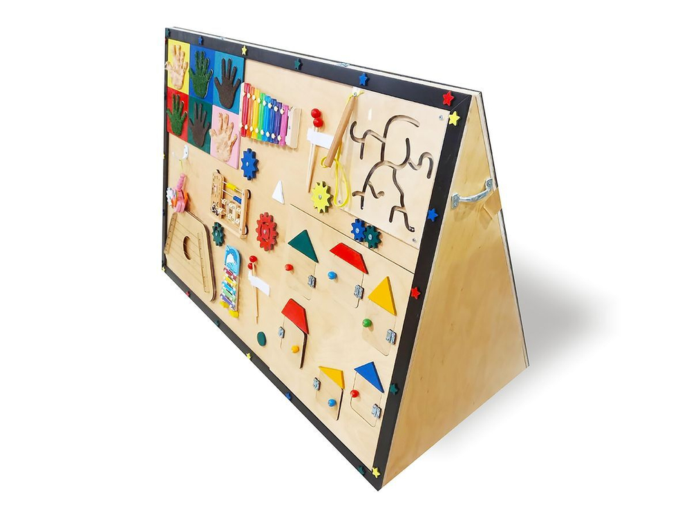 Двухсторонняя тактильная панель – отличное решение для подарка ребенку. Такая игрушка принесет много радости, станет стимулом для постоянного саморазвития. Товар ориентирован на детей дошкольного возраста. Данный период считается наиболее сенситивным для формирования любых полезных умений.