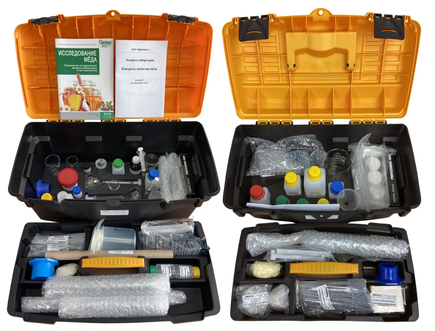 Экспресс-лаборатория обеспечивает проведение экспресс-контроля качества пчелиного мёда и воска непосредственно на объекте, без доставки проб в стационарную лабораторию, при использовании предусмотренных в ее составе реагентов, оборудования, вспомогательных средств и практического руководства.