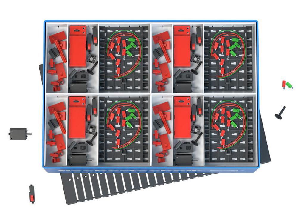 Каждый набор хранится в отдельном контейнере с перегородками, а весь комплект упакован в 2 ящика 1000-й серии.