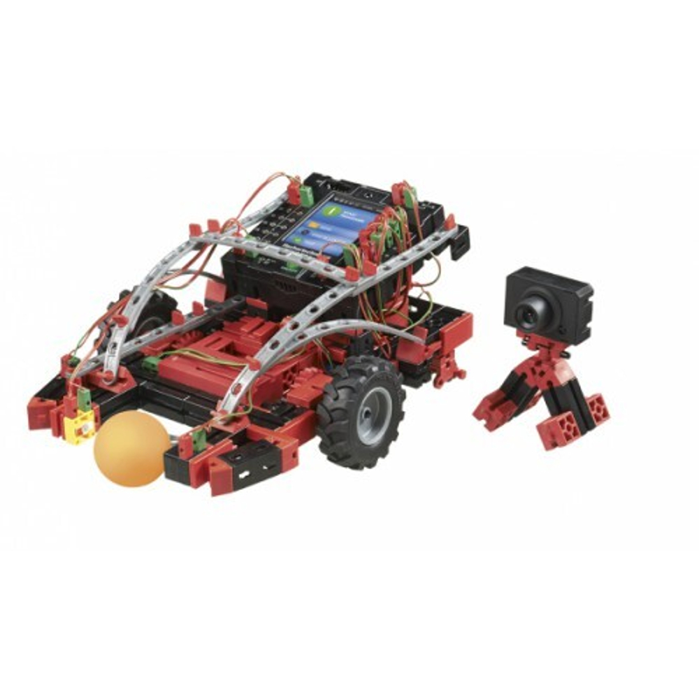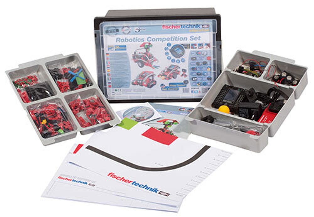 Набор включает все, что нужно для программирования роботов: программное обеспечение ROBO Pro, программируемый TXT контроллер, видеокамеру с USB интерфейсом, комбинированный датчик (3 датчика в одном устройстве: трехосный гироскоп, трехосный акселерометр, геомагнитный датчик), 3 ультразвуковых дальномера, оптический датчик траектории, оптический датчик света, фоторезистор, термистор, два мотора с энкодером, мотор XS, лампы и светодиоды, кнопки, детали для сборки конструкции, полигоны для соревнований, мячик для робо-футбола, аккумулятор и зарядное устройство, USB-кабель A mini-B для подключения к компьютеру.