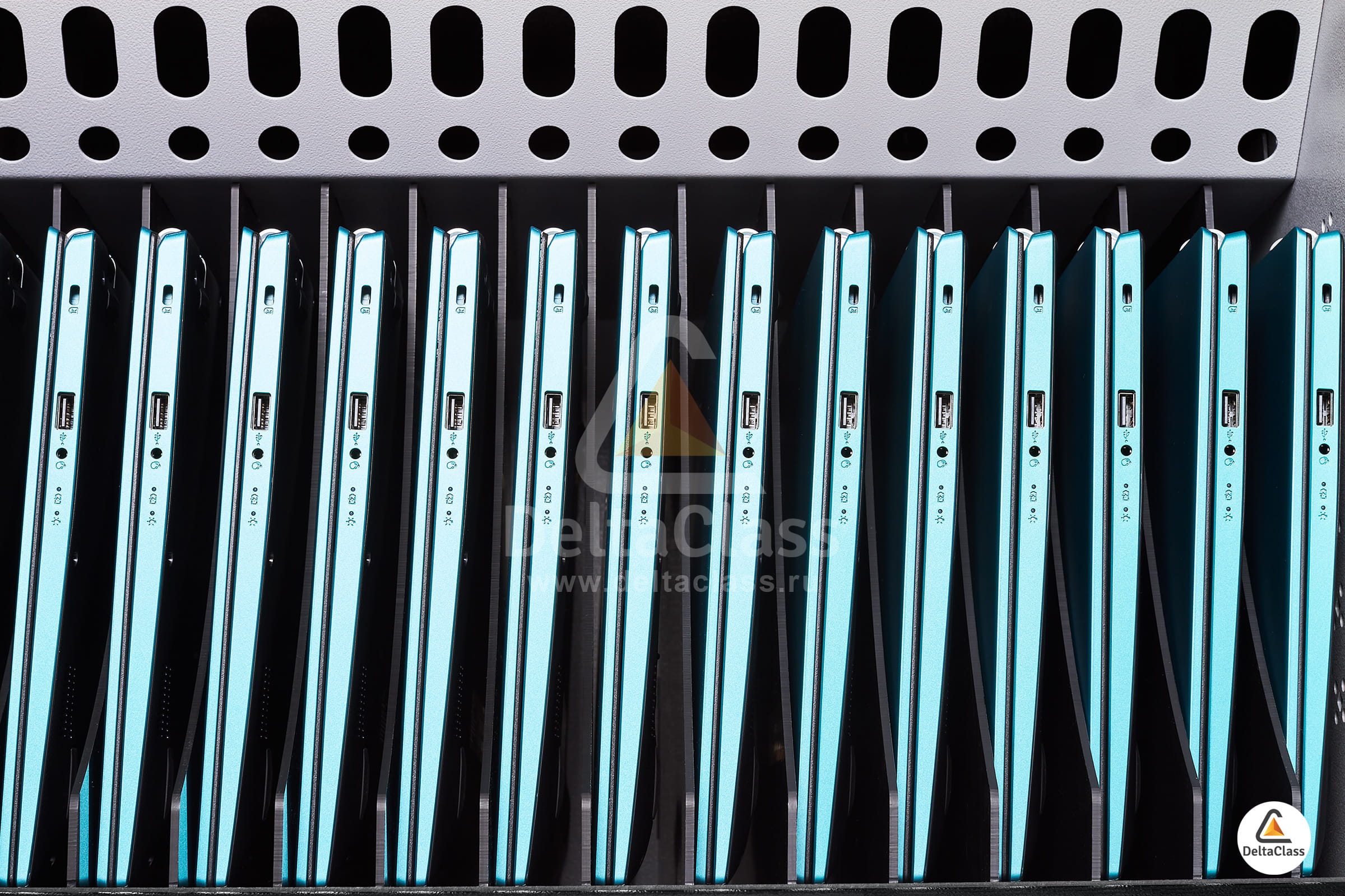 - Индивидуальные ячейки для ноутбуков — ноутбуки не повреждаются при многократном извлечении/установке
