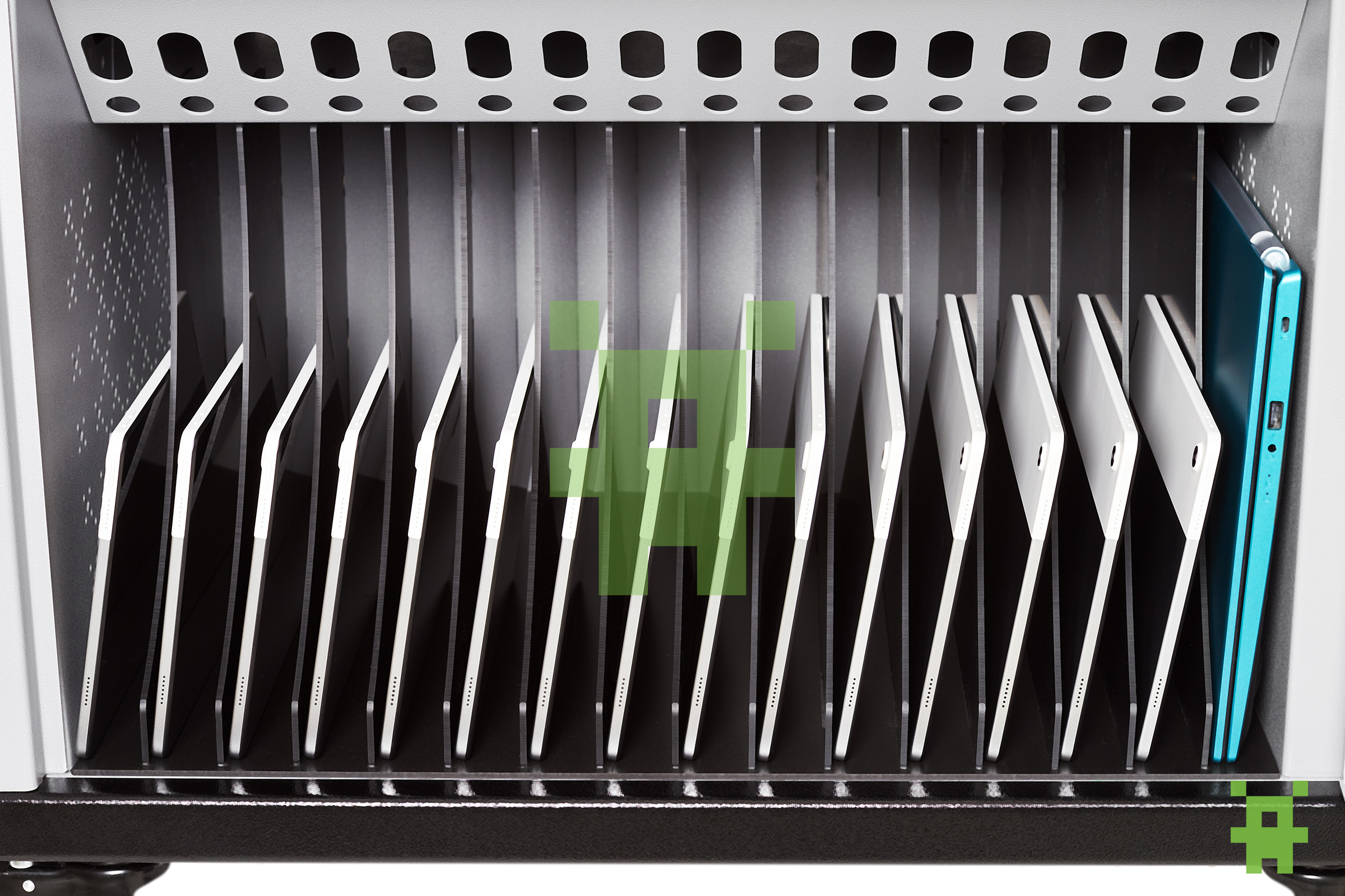 - Индивидуальные ячейки для планшетов — планшеты не повреждаются при многократном извлечении/установке