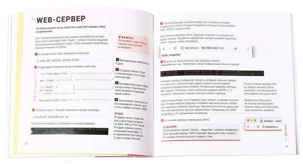Эксперименты сопровождаются цветными иллюстрациями и скриншотами, кодами программ с подробными комментариями и заданиями для развития проекта.