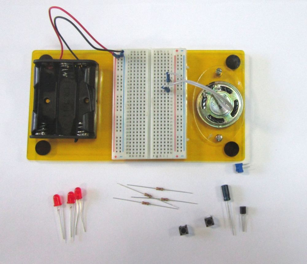 Конструктор "Эксперименты со звуком" поможет юному технику освоить азы создания аудиоустройств. Основным элементом электронного конструктора является МАКЕТНАЯ ПЛАТА. Макетная плата позволяет собирать электрические схемы без применения пайки. Применение такой технологии позволяет избежать работы с паяльником (температура жала которого превышает 300C° ) и свинцовым припоем пары, которого вредны для организма. Так же применение макетной платы позволяет многократно использовать электронные компоненты в других электрических схемах. Т.е. применение макетной платы не повреждает электронные компоненты.