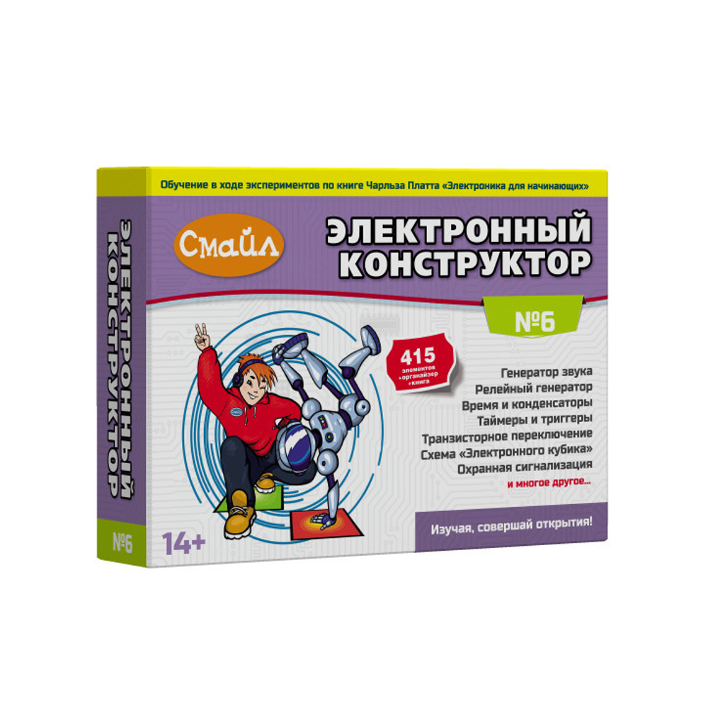 Набор №6 - это Набор №3 + книга Чарльза Платта "Электроника для начинающих". На его основе можно собрать эксперименты с 1 по 25 из книги Чарльза Платта "Электроника для начинающих". Электронный конструктор СМАЙЛ Набор №6 - это хорошее приобретение для тех у кого нет ещё книги "Электроника для начинающих" в печатном или электронном виде. А также для тех, у кого дома уже есть набор инструментов. Таких как: паяльник, кусачки, пинцет, утконосы и мультиметр.