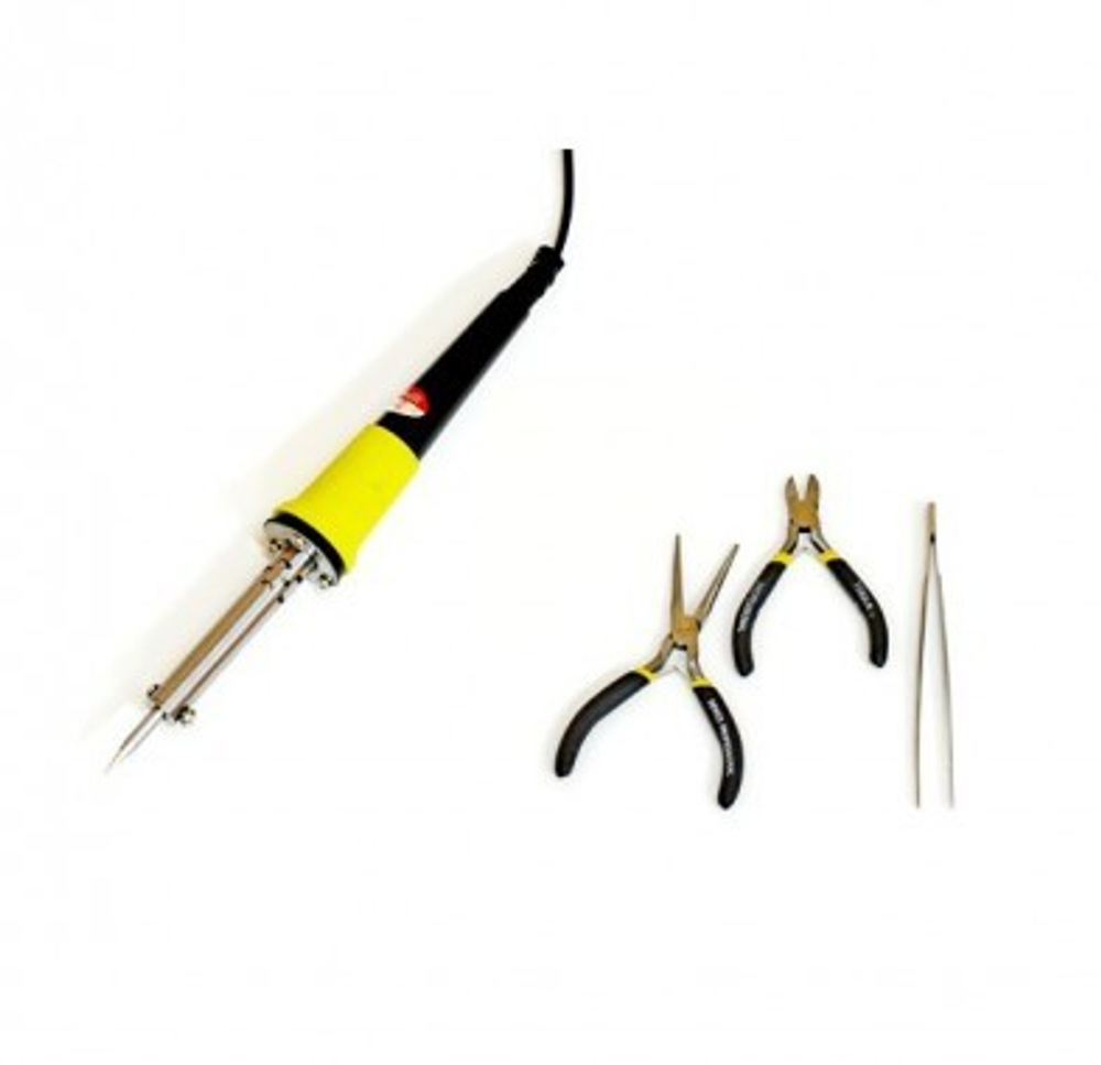 Набор №7 - это базовый Набор №1 + книга Чарльза Платта "Электроника для начинающих" + инструменты (паяльник, кусачки, пинцет, утконосы и мультиметр). Это бюджетный вариант, но вместе с тем достаточно функциональный. На его основе можно собрать эксперименты с 1 по 11 из книги Чарльза Платта "Электроника для начинающих". Хороший вариант для полноценного старта. Этот набор будет необходим тем родителям, которые хотят оторвать своего ребёнка от компьютерных игр, но пока не уверены проявится ли интерес к электронике. Входящие в состав набора инструменты пригодятся в доме и детям и взрослым.
