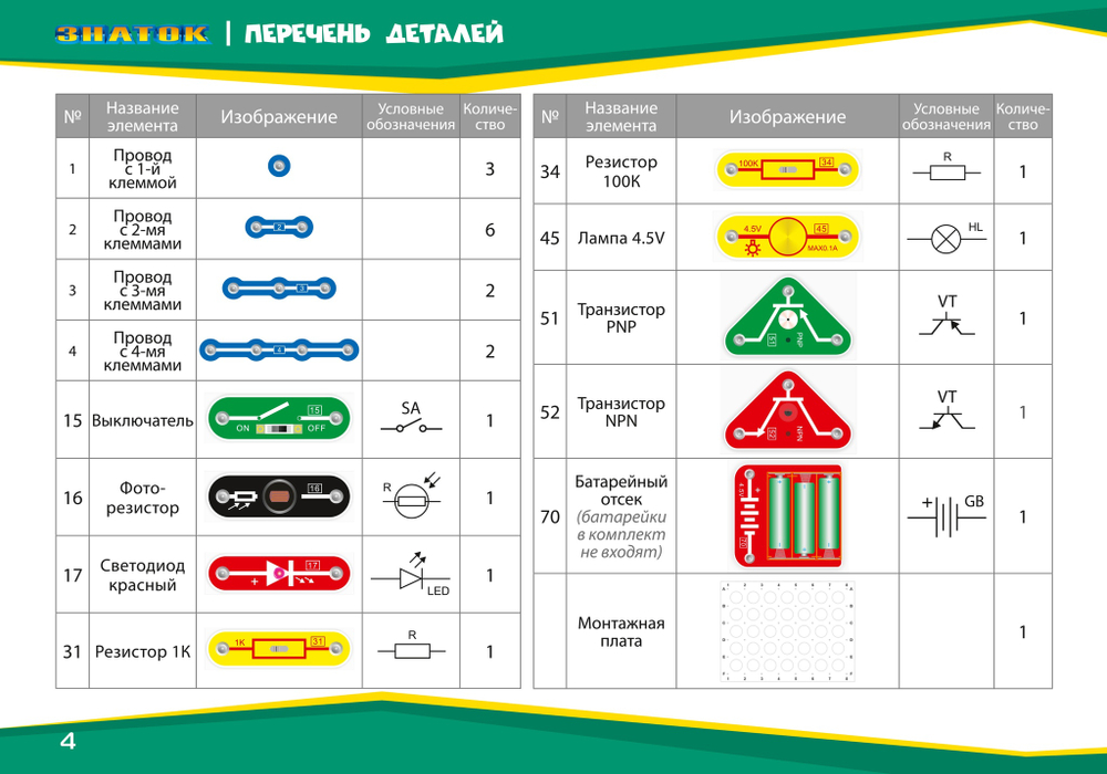 Даже без помощи взрослых, используя очень понятное цветное руководство, всего за несколько минут, дети смогут собрать и испытать схему с практически 100% положительным результатом.