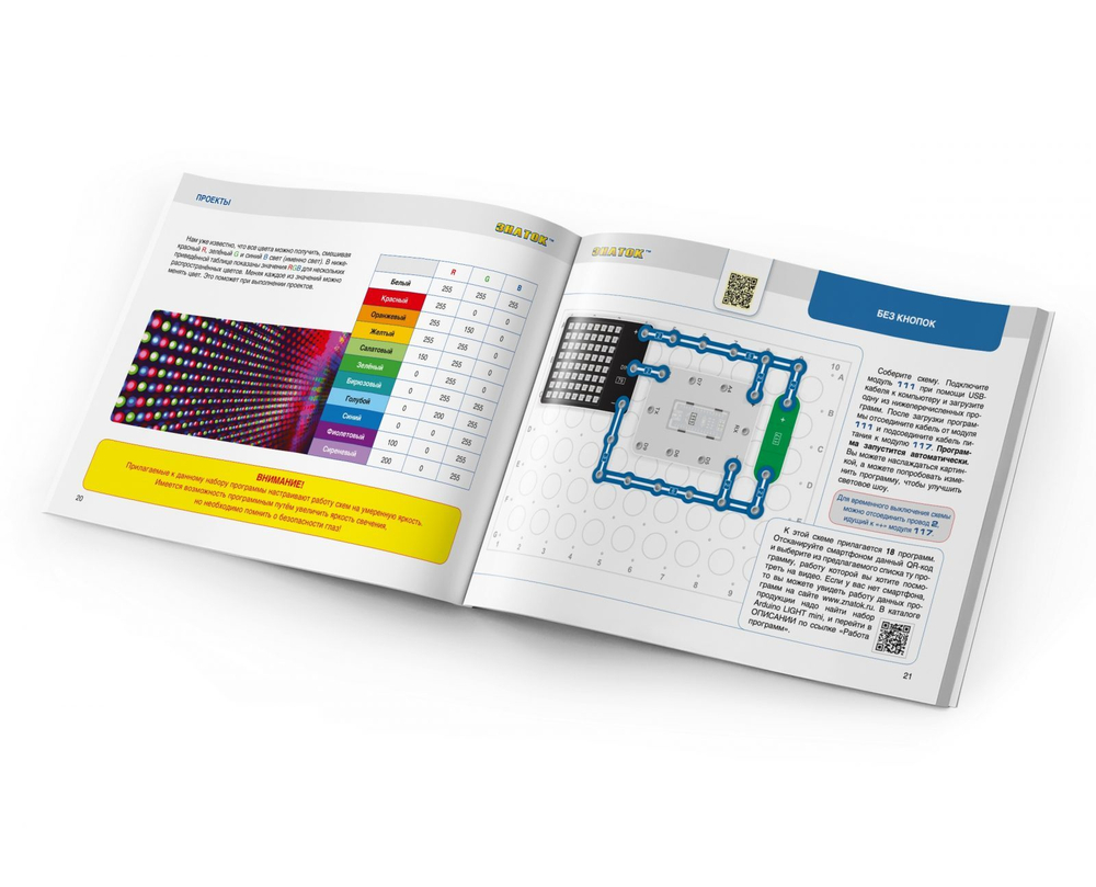 В наборе более 30 готовых проектов! Вы сможете создать множество своих оригинальных проектов. Идеальный подарок для мальчика и девочки на любой повод!