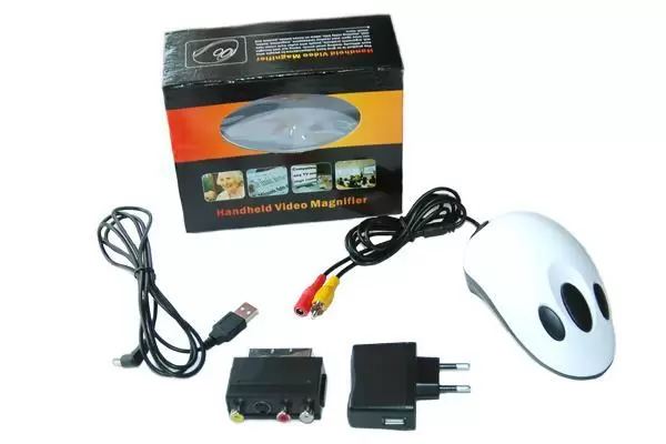 Портативный электронный видеоувеличитель в виде компьютерной мыши — это самое недорогое решение, что бы превратить ваш домашний телевизор в современный видеоувеличитель. С его помощью пользователь может подключиться к компьютерному монитору или обычному телевизору и читать различные тексты, газеты, журналы, рассматривать фотографии и другие изображения с предпочтительным уровнем увеличения. Форма корпуса и органы управления видеоувеличителя обеспечивают комфортное перемещения по тексту и переключение режимов работы. Устройство отличается простотой в работе, надежностью, эргономичностью и удобством в использовании. Минимальная кратность увеличения определяется размером диагонали монитора или телевизора к которому он подключен.