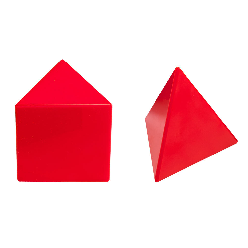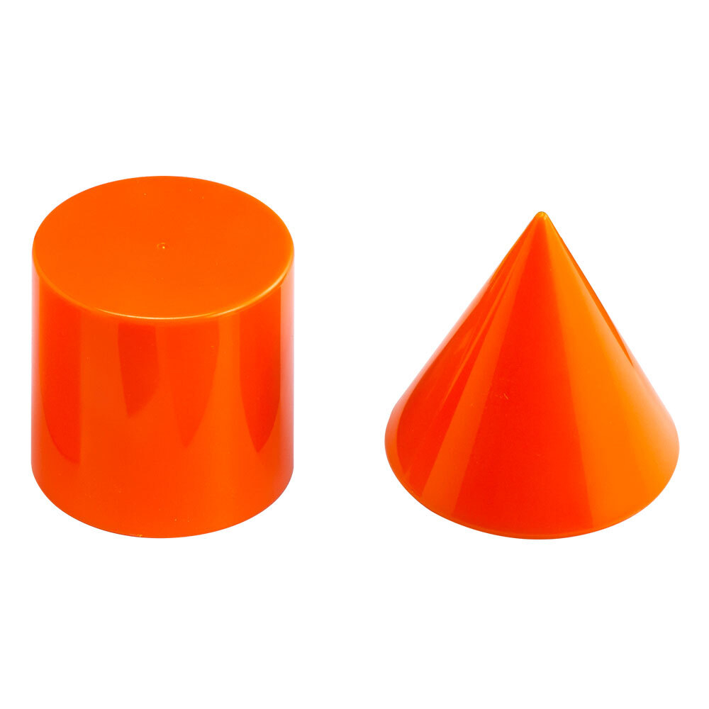 Набор из 12 геометрических тел в 6 цветах (основание 8 см) включает в себя: куб, цилиндр, конус, треугольная призма, квадратная пирамида, треугольная пирамида, шар, полусфера, параллелепипед, пятиугольная пирамида, пятиугольная призма и шестигранная призма.