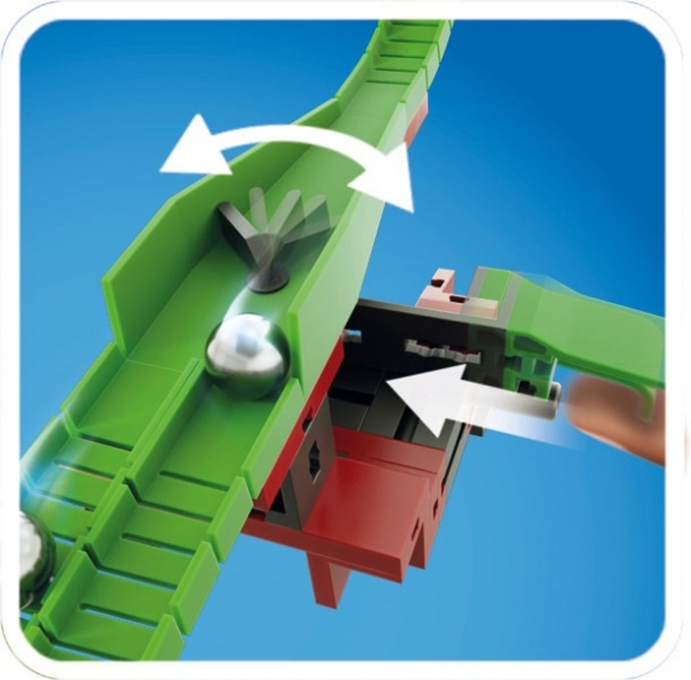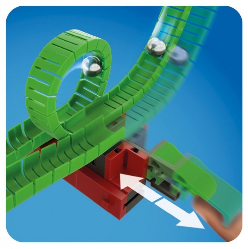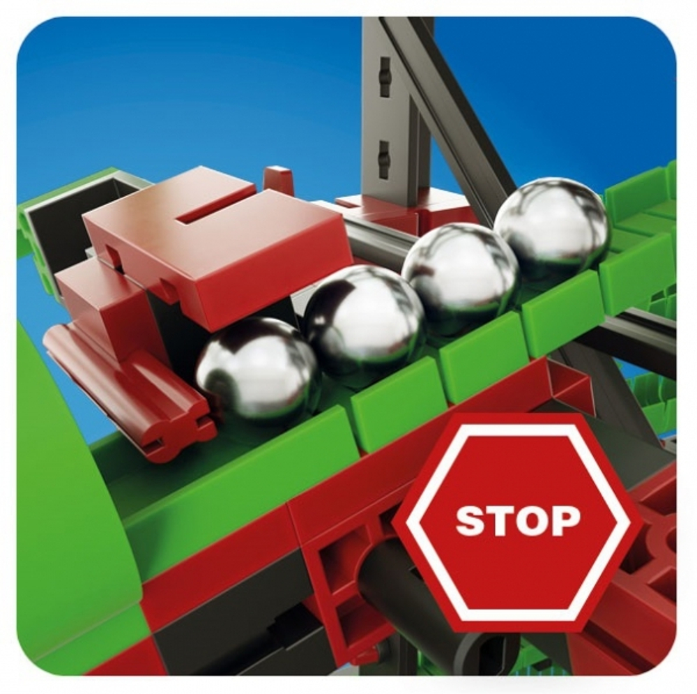 В этом конструкторе множество новых дополнительных функций. Перекрестки, семафоры, гибкие тоннели и яркие светодиоды превратят спуск шариков в настоящее приключение. С помощью этого набора можно изучить такие физические явления как: инерция, ускорение, сохранение энергии, импульс и другие темы.
