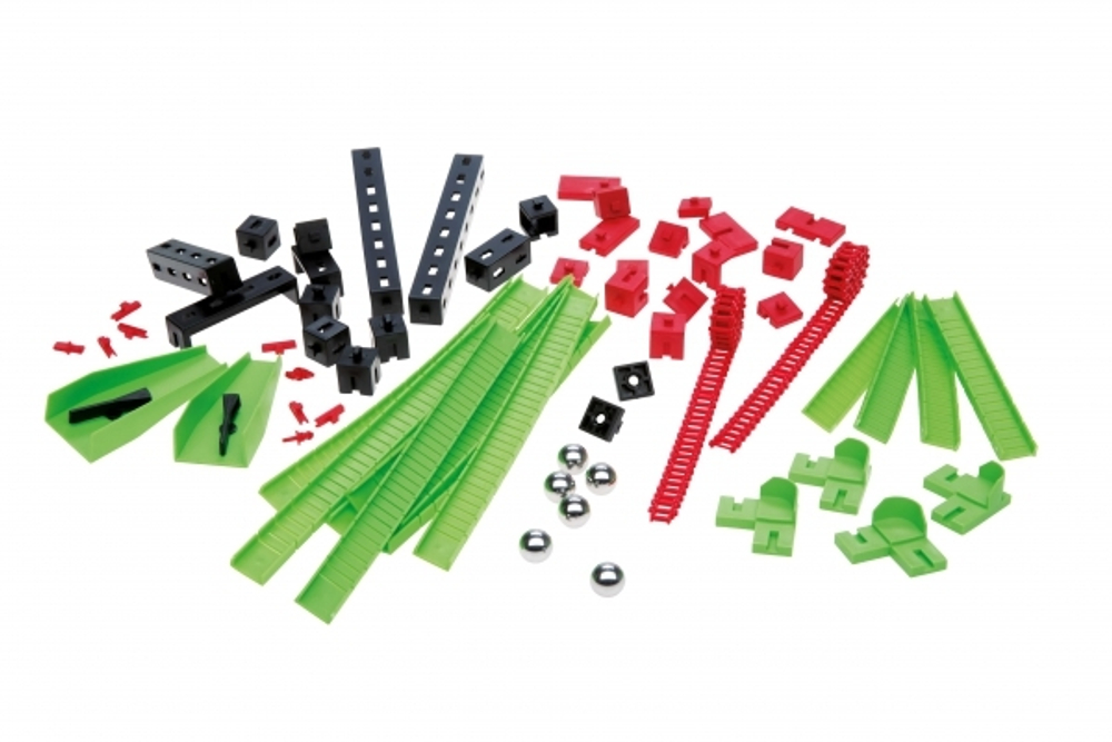 Набор отлично подойдет для маленьких изобретателей, которые хотят сделать свои маршруты для шариков ещё более увлекательными и непредсказуемыми. Он позволит сделать ваши горки больше, круче и опаснее, добавив в них скорости и драйва. Для этого в набор входят специальные угловые элементы, улавливающие воронки, короткие и длинные желобки.