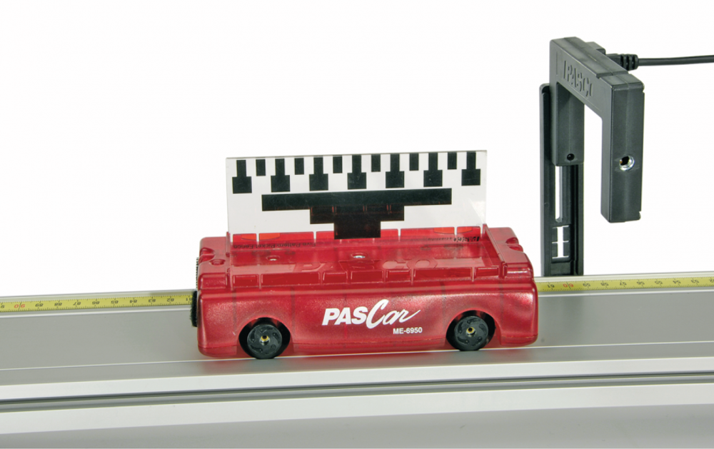 Флажок для динамической тележки крепится непосредственно к динамическим тележкам PASCO.