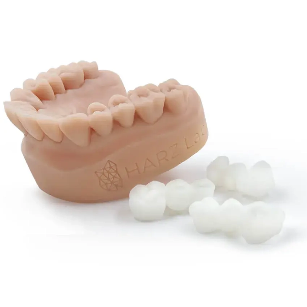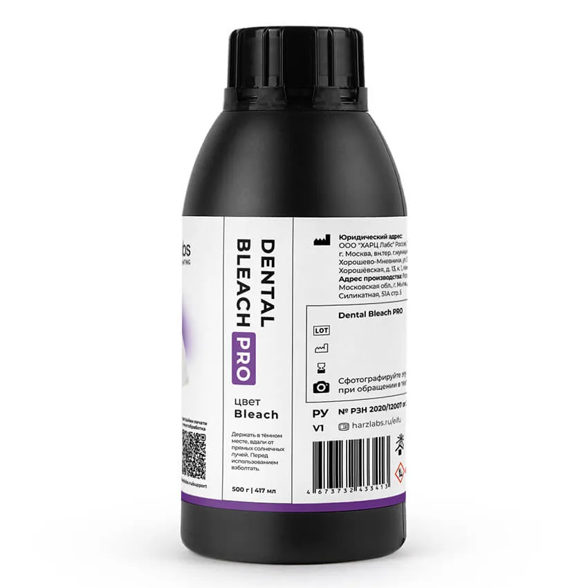 Фотополимерная смола Dental Bleach PRO - это специализированное решение для изготовления временных коронок и прочных мостовидных протезов методом 3D-печати. Его исключительные характеристики включают минимальное поглощение влаги и сбалансированное микрокерамическое наполнение, что обеспечивает создание ортопедических конструкций с высокой прочностью и износостойкостью. 3D-печатные коронки и мосты можно легко полировать, а также им можно придать цвет с помощью композитных красителей. Благодаря слабому запаху и отсутствию вредных мономеров с этим материалом можно безопасно работать даже в замкнутом пространстве. Более того, он сертифицирован для медицинского применения, что дает дополнительную гарантию его пригодности для использования в здравоохранении.