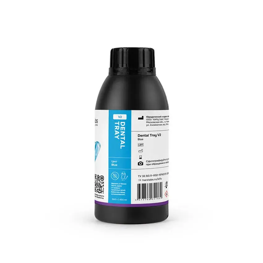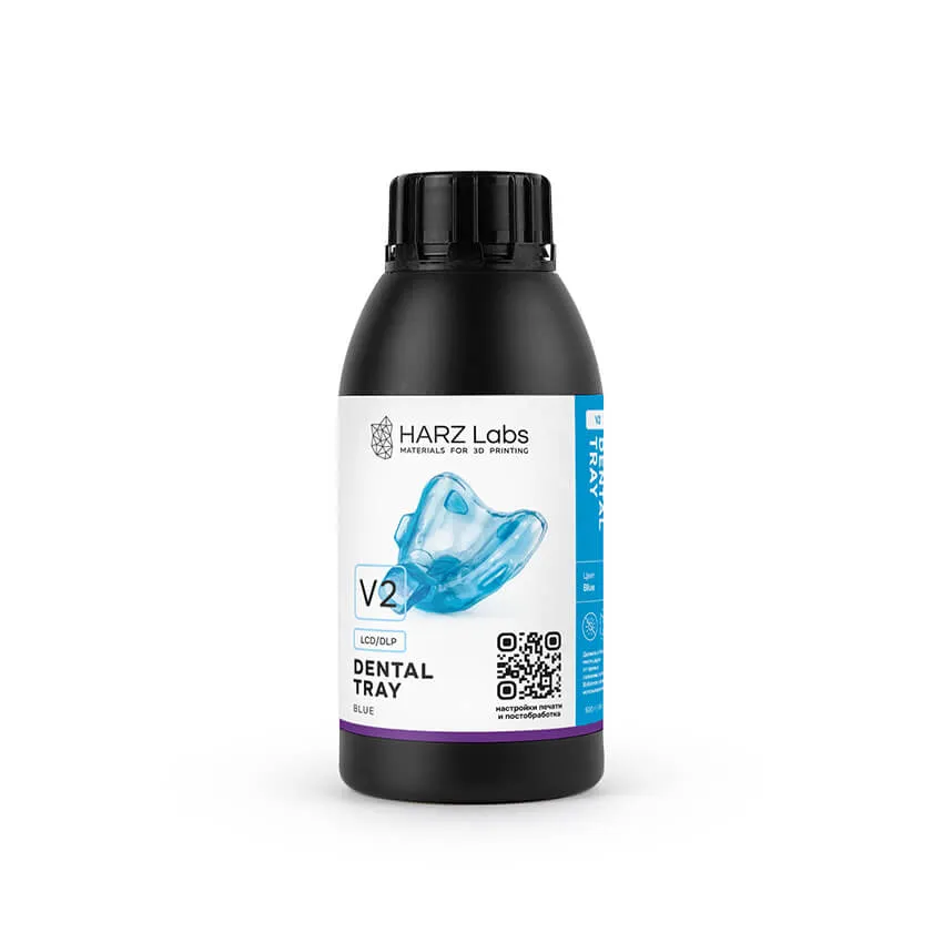 Фотополимер HARZ Labs Dental Tray V2 предназначен для производства персональных ложек, используемых для создания высокоточных функциональных слепков. Изготовленные с его помощью ложки отличаются высокой прочностью и устойчивостью к деформации, что гарантирует долговечное сохранение оттисков. Благодаря возможности нанесения слоев толщиной до 200 мкм, процесс производства значительно ускоряется. Материал обладает минимальным запахом и не содержит токсичных мономеров, что делает его безопасным для использования даже в небольших лабораторных помещениях.