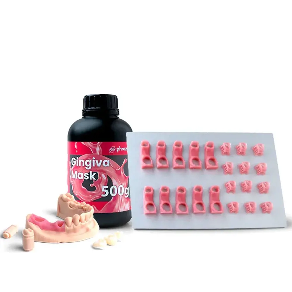 Phrozen Gingiva Mask Resin - это мягкий материал с высокой эластичностью и прочностью, специально разработанный для стоматологии. Он легко обрезается до нужной формы и демонстрирует отличную устойчивость цвета.