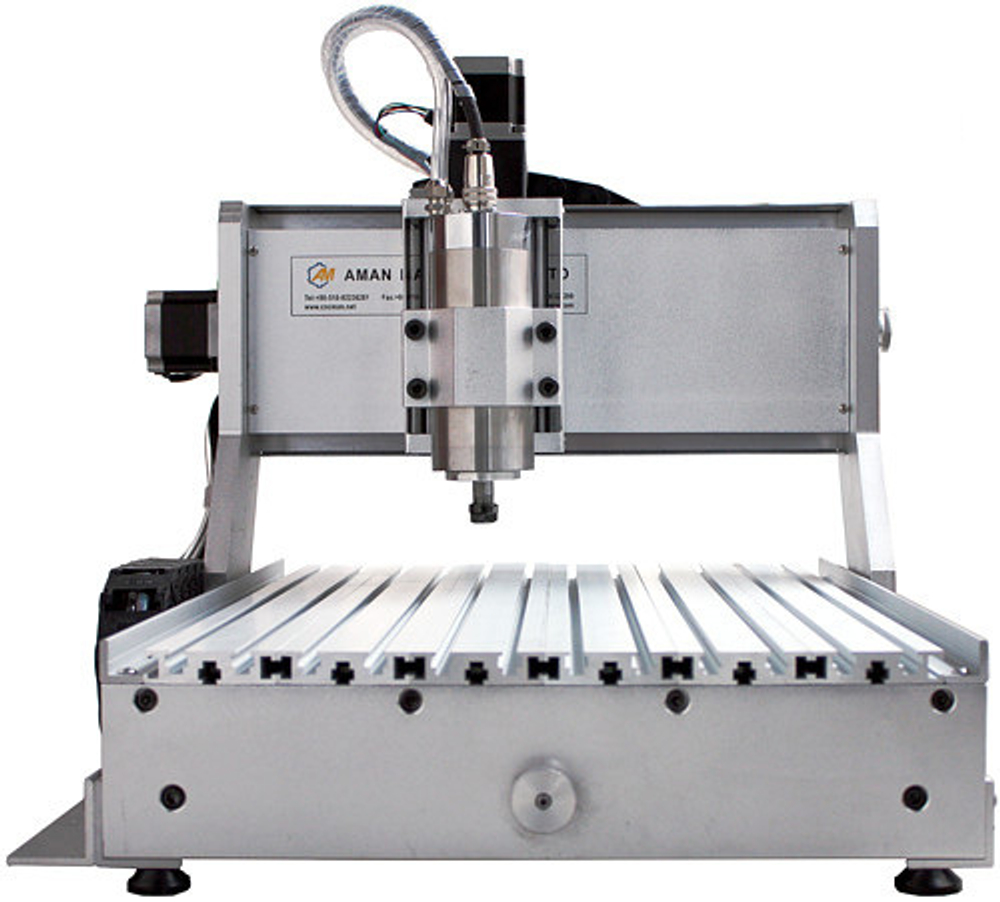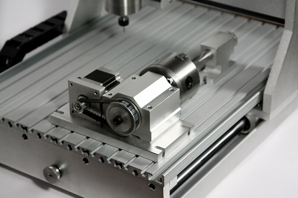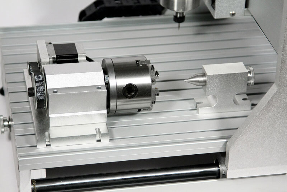 Настольный фрезерный станок с ЧПУ AMAN 3040 4axis 1500W – мини-станок с размерами рабочего поля 300 x 400 мм. Полноценная поворотная ось в комплекте расширяет возможности станка.