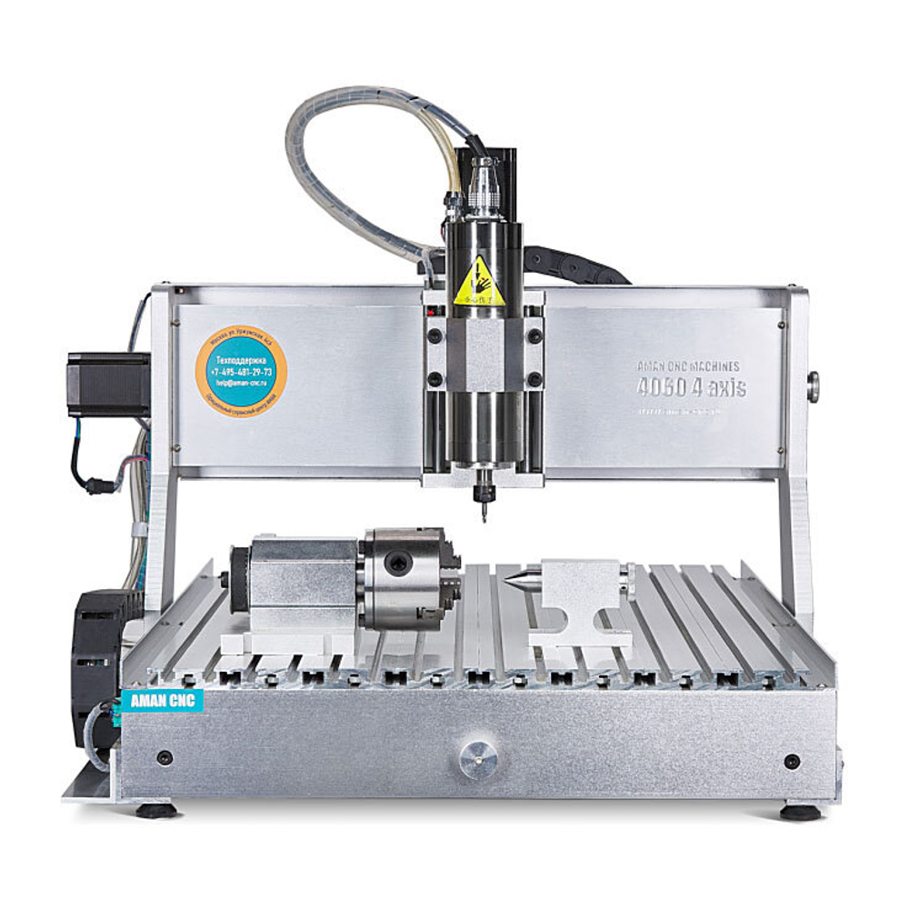 3D фрезерный станок с ЧПУ AMAN 4060 4 axis 800W – это фрезерный четырех-координатный станок по дереву, пластику, мягким металлам. Станок обладает самым большим размером рабочего поля (400 x 600 мм) в серии станков от компании AMAN. Полноценная поворотная ось в комплекте расширяет возможности станка.