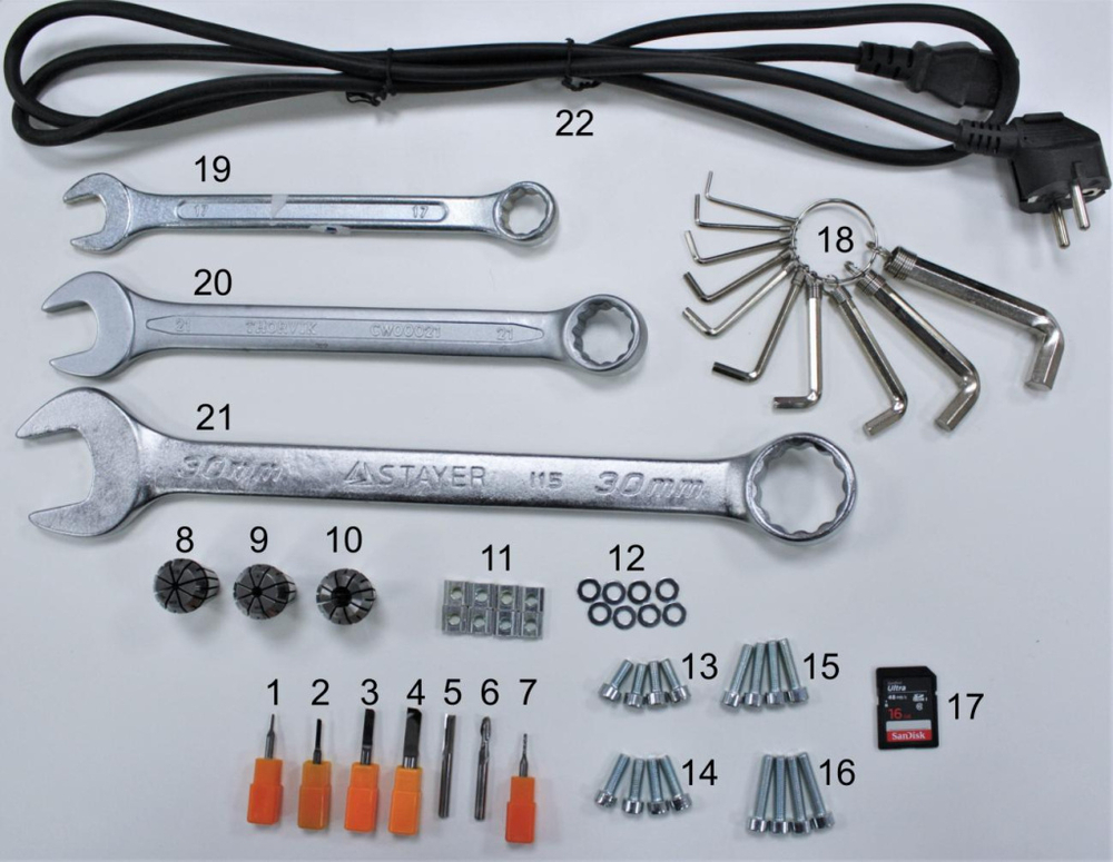 Инструмент закрепляется в цанговом патроне, который крепится на шпинделе – устройстве, которое обеспечивает вращение и подвод инструмента к заготовке. Шпиндель располагается на подвижной горизонтальной балке – портале, который перемещает шпиндель и закрепленный в нем инструмент над обрабатываемой заготовкой, устанавливаемой на рабочем столе станка.