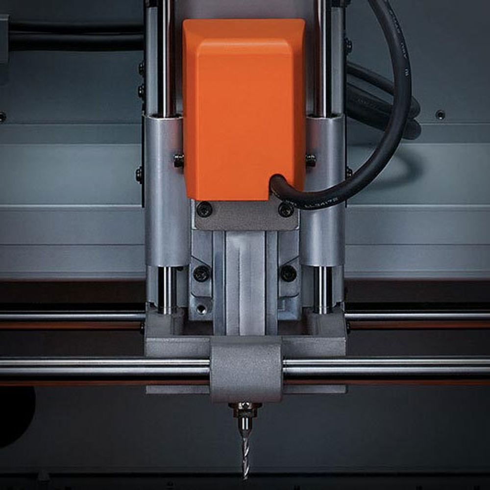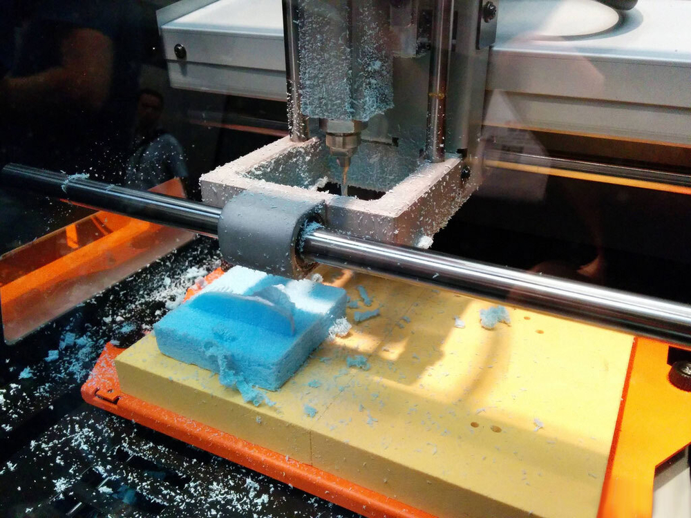 Этот фрезерный ЧПУ-станок легко помещается на обычном столе и весит менее 20 кг. С его помощью можно обрабатывать древесные плиты, пластик ABS, поликарбонат, плексиглас, текстолит, модельный воск. Независимо от материала точность обработки остаётся на высоте. У фрезера механическое горизонтальное разрешение составляет 0.000998594 мм/шаг и примерно такую же точность способно обеспечить ПО станка (NC code) – 0.001 мм. Достаточно сказать, что по своей точности SRM-20 превосходит многие DLP-принтеры. После шлифовки на этом станке поверхность изделия будет сложно отличить от литой.