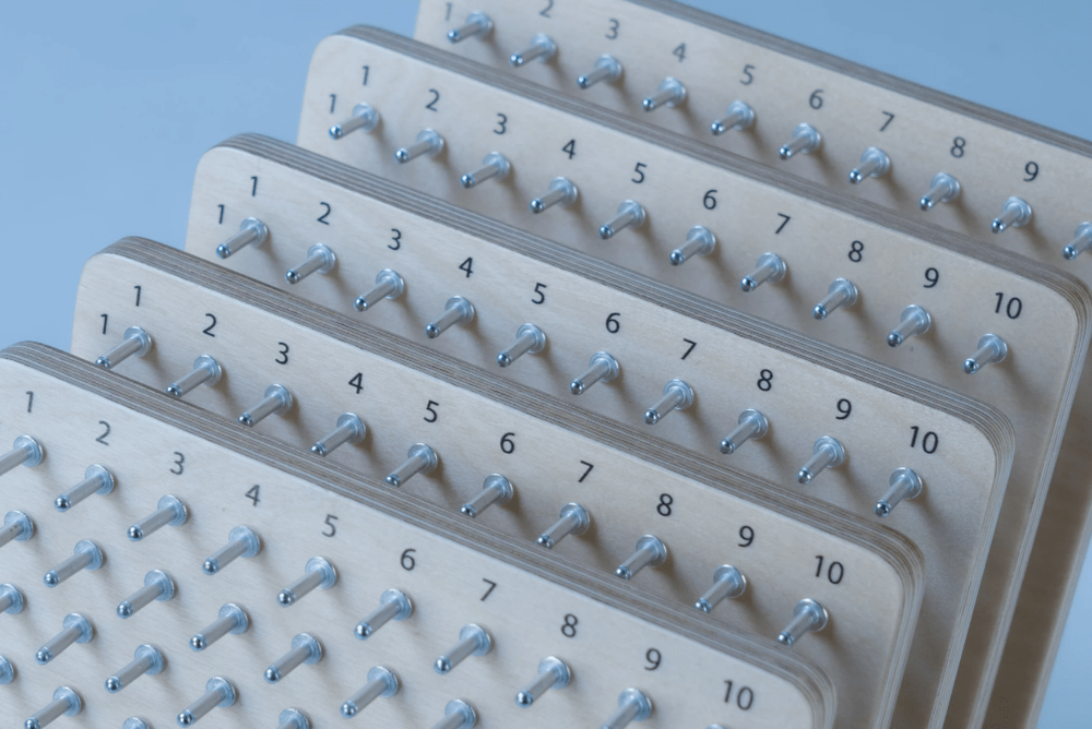 Набор геобордов – это пять деревянных досочек с тяговыми заклепками, на которые ребенок размещает резинки для творчества, тем самым создавая изображение. Это могут быть буквы, цифры, геометрические фигуры или полноценные изображения.