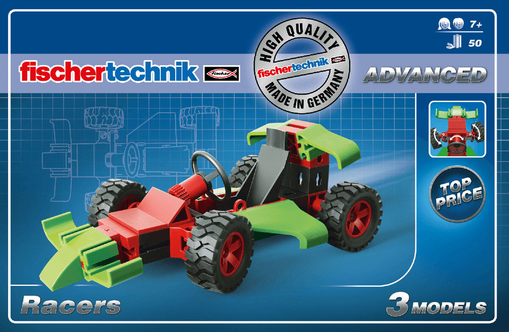 Соберите три модели гоночных машин с механизмом рулевого управления.